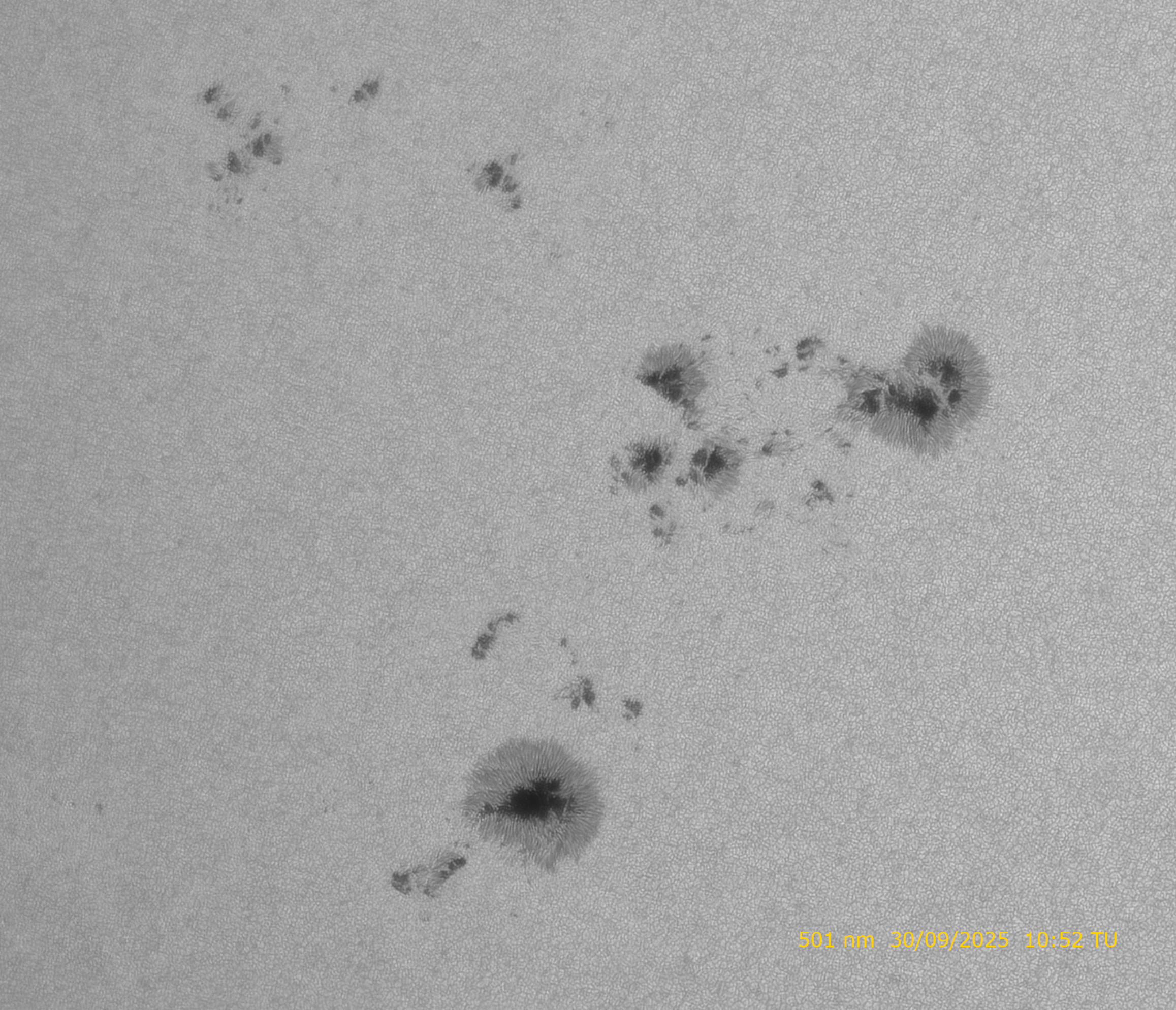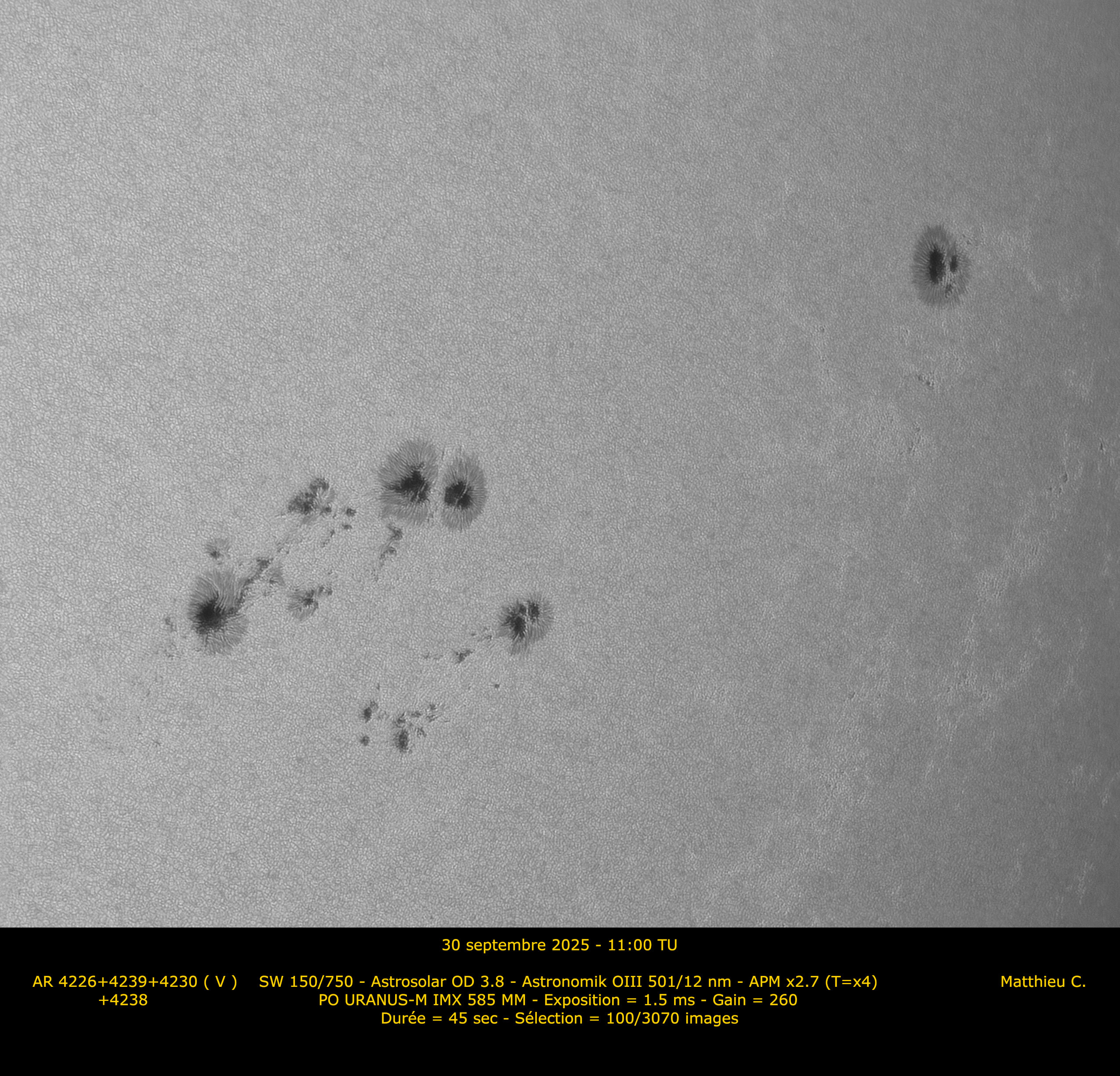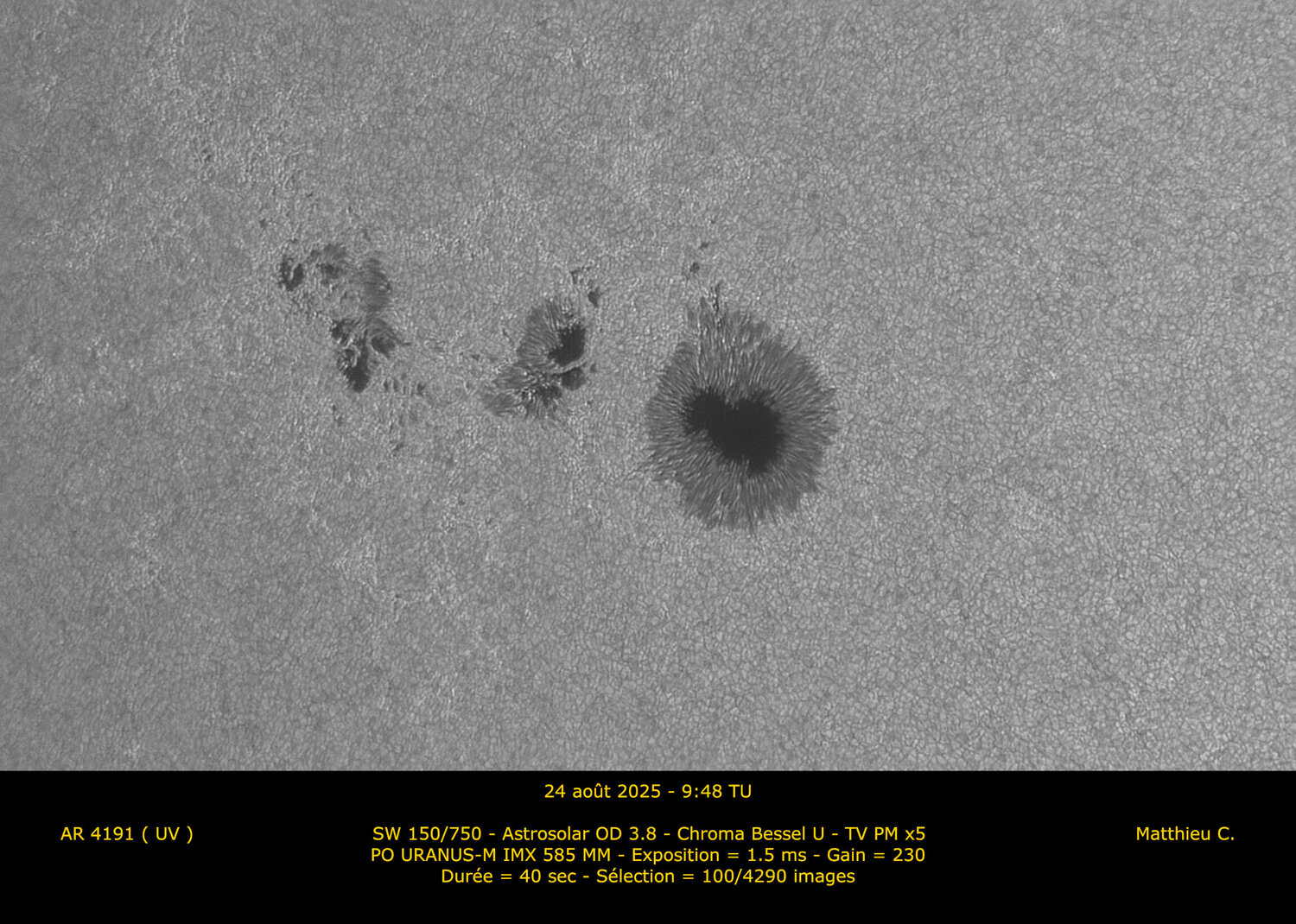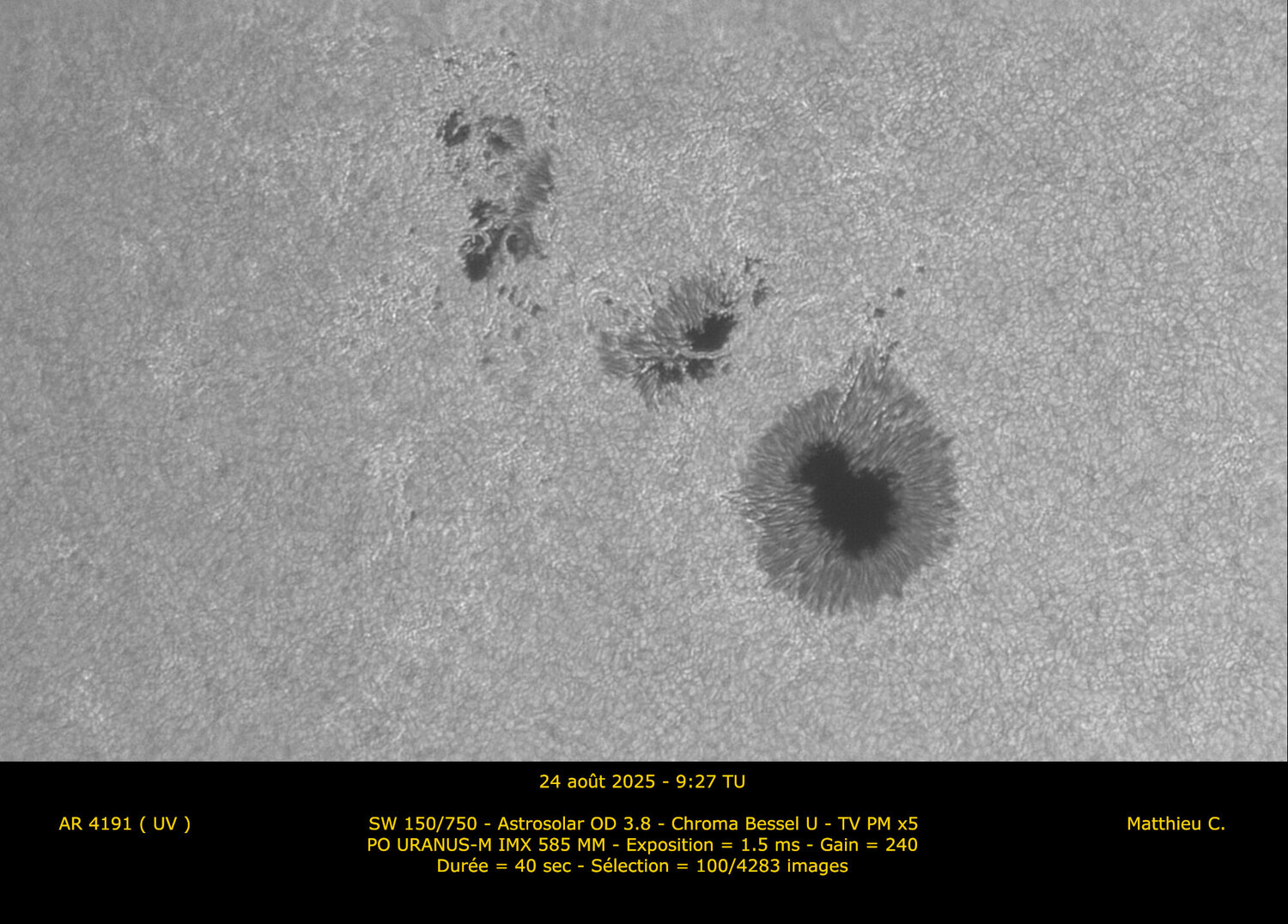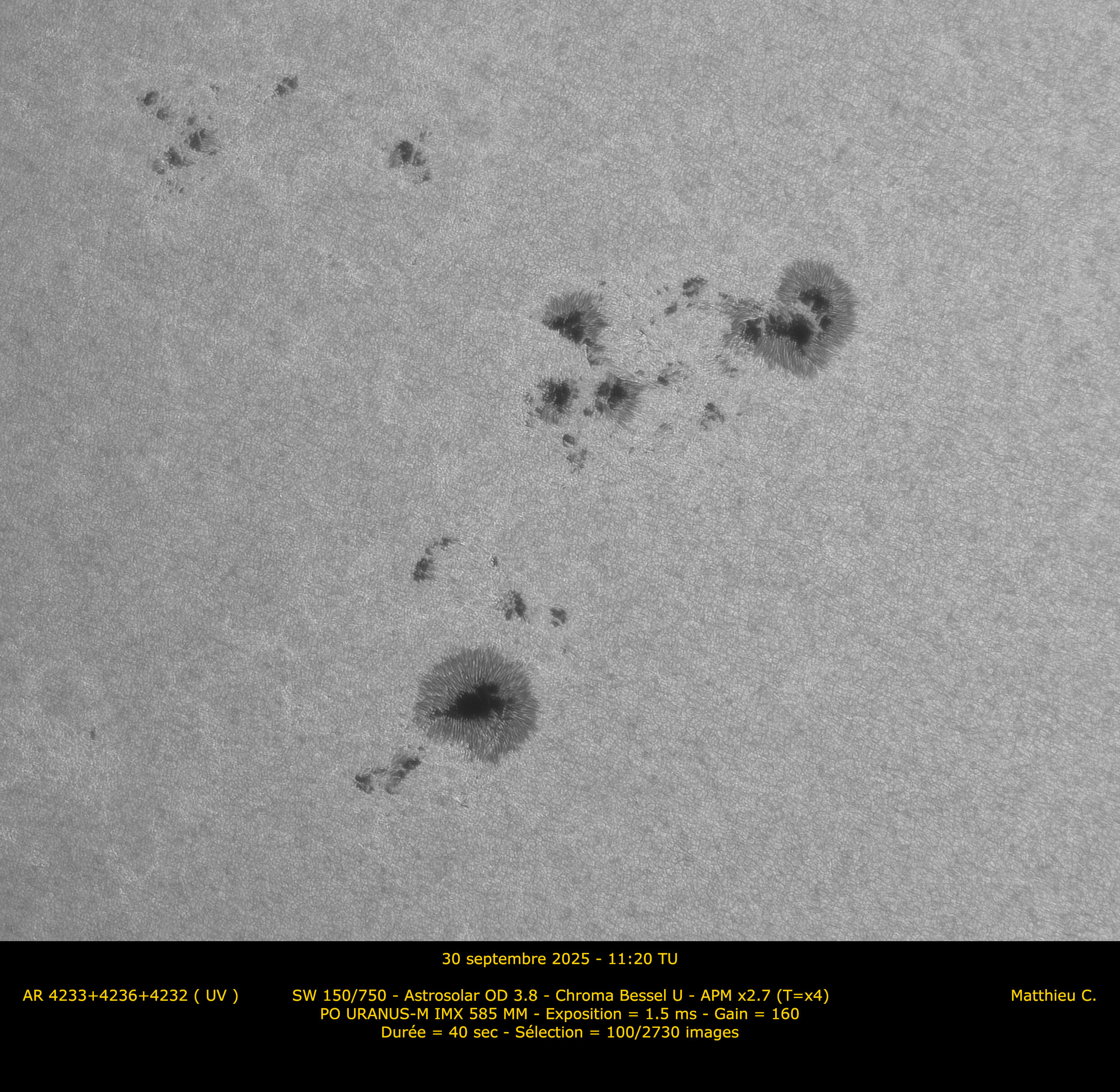 Bonjour. Quelques photos prises il y'a deux jours en Cak et en proche UV haute résolution. Malgré un seeing pas tout à fait au taquet, c'est la première fois que j'arrive à faire passer le Cak 3 nanomètres avec succès en HR avec une feuille astrosolar densité 3.8. Tout cela grâce au combo gagnant IMX 585 / APM x2.7 dont la transparence en UV est redoutable... -