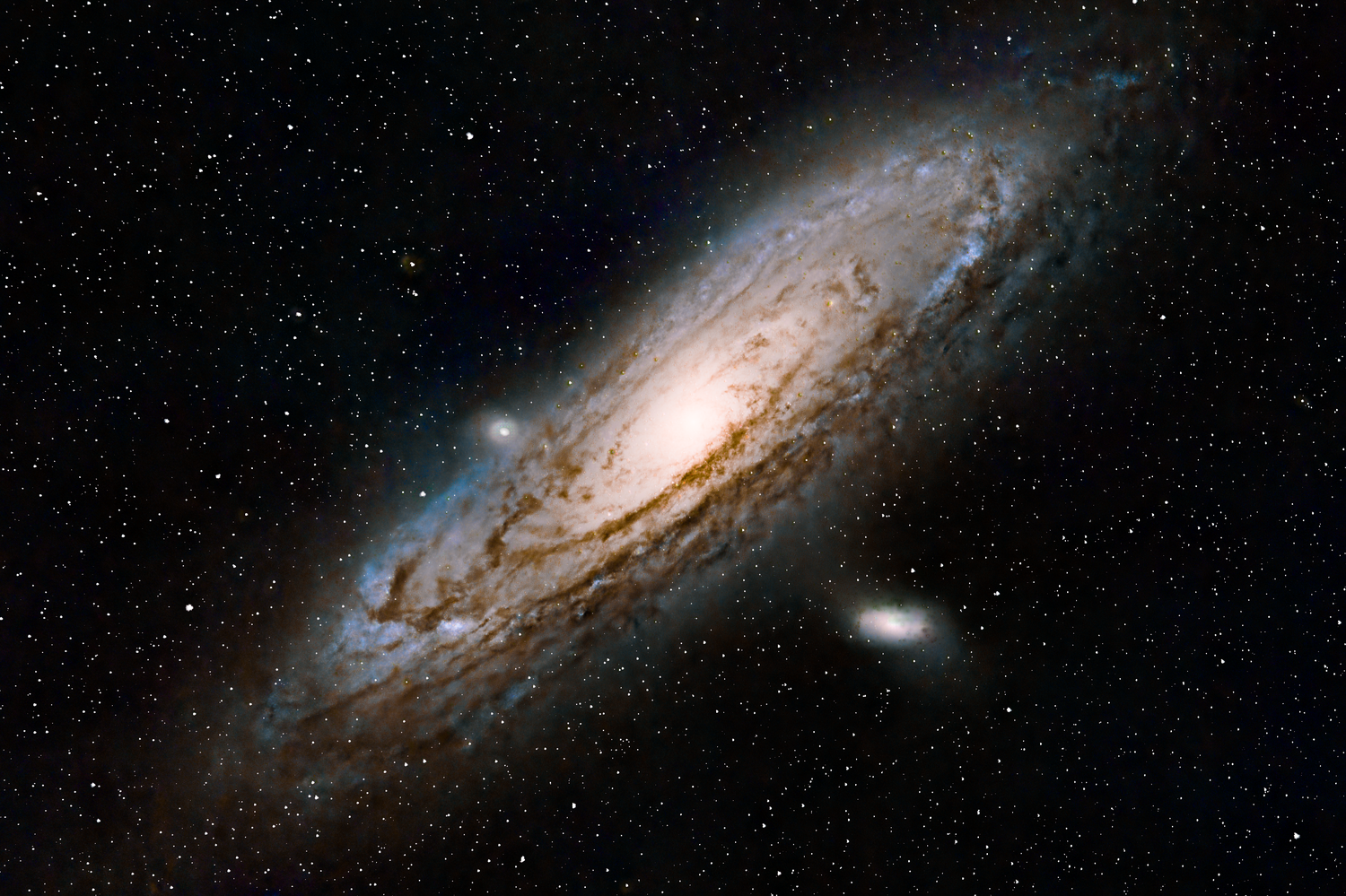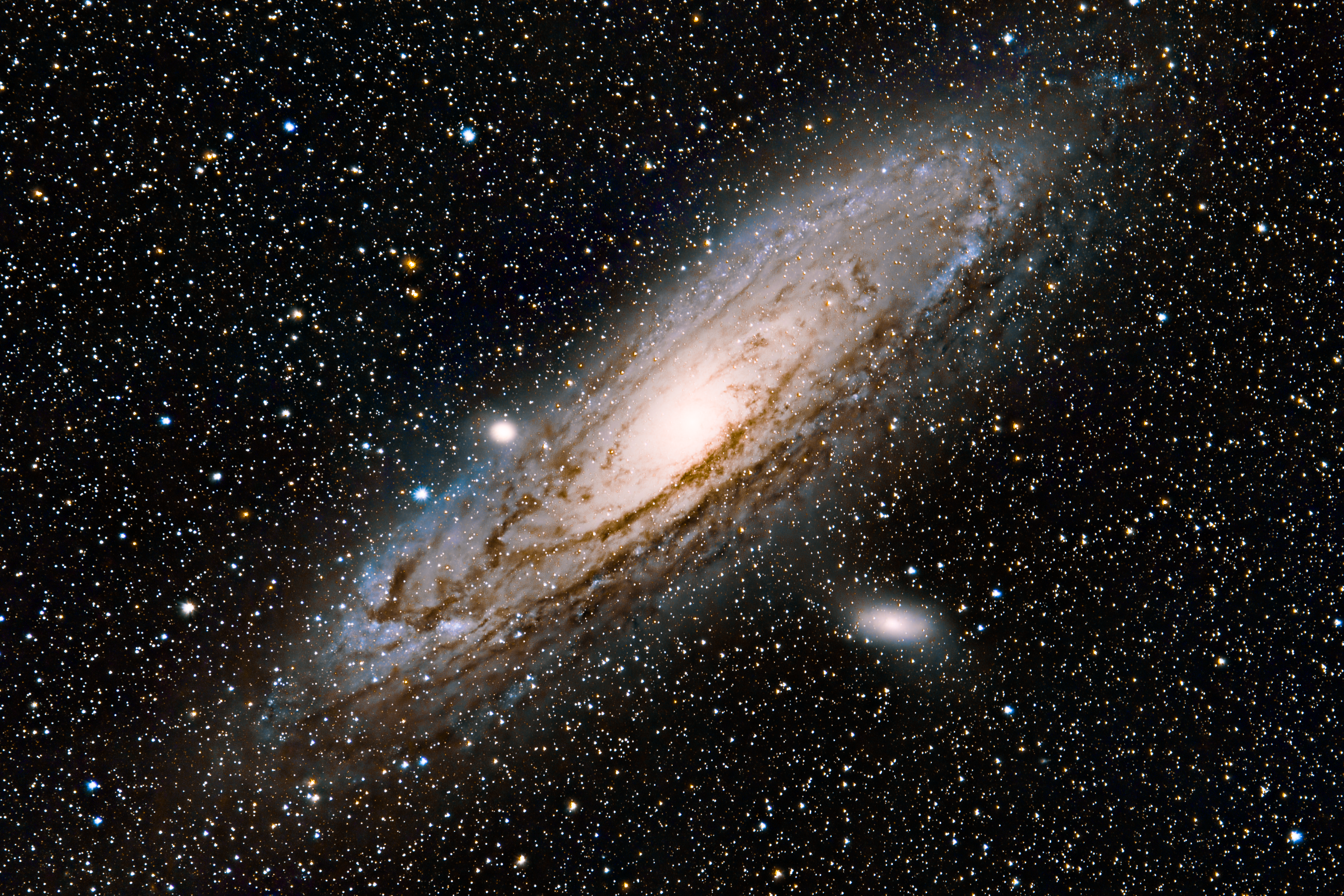 En attendant du ciel ... travail pour une meilleure compréhension du développement des images 😉 Et focus sur M31 accompagné de traitement Starnet Recap : Cible: M31 Lieu: RP95 - Bortle 5,9 - 17/10/25 Light 60x120s Iso800 Dx30 Fx30 DFx26 Lunette: Canon EF 400 DO f/4.0 @f/4.5 Imageur: Canon 5Dm3 Monture: Ioptron GEM45 Guidage: Artesky 60/225 + ASI220 Traitement: Siril empilement GraXpert gradient / débruitage Siril developpement LightRoom cosmétique Siril Starnet Je ne pensais pas arriver à sortir cette image pour ma deuxième prise M31 et CP / premier guidage ... et il y a encore beaucoup de progrès à faire 😂