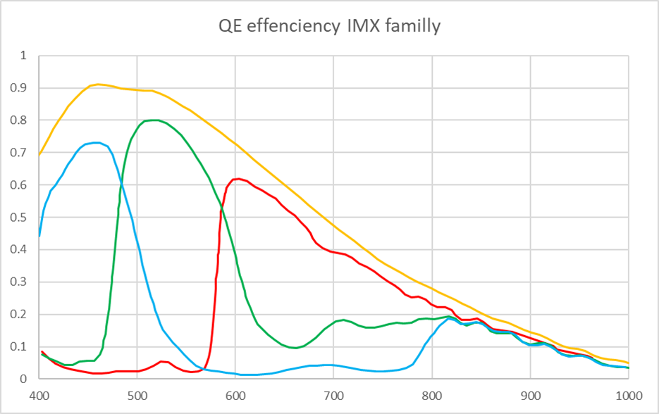 Courbes QE des capteurs Sony IMX