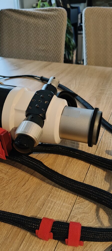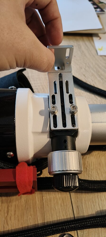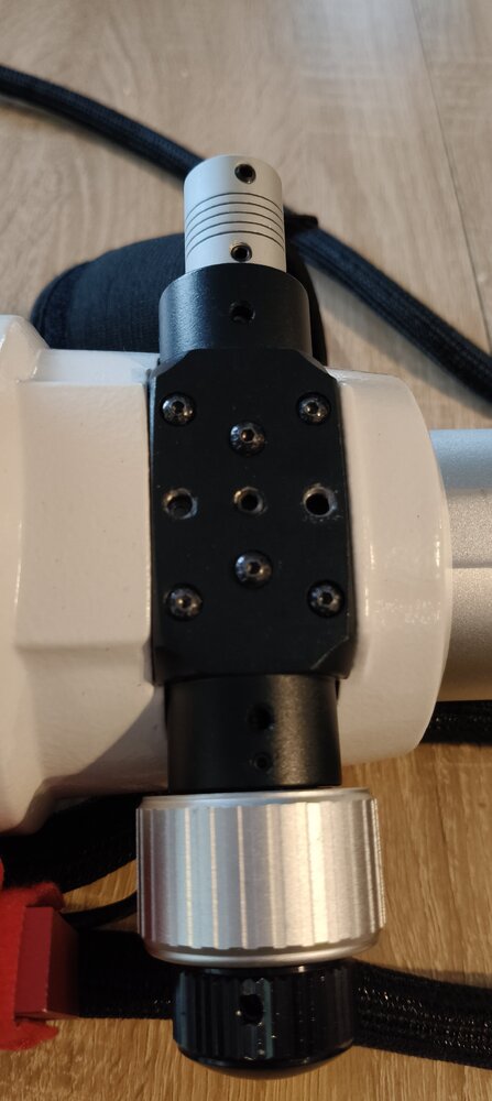 6. C'est une des 3 vis qui tient le Crayford fixe au tube. Je pense avoir résolu le problème en jouant sur les vis noires, la platine fait davantage pression sur le tube l'intérieur. À voir avec le temps 😉