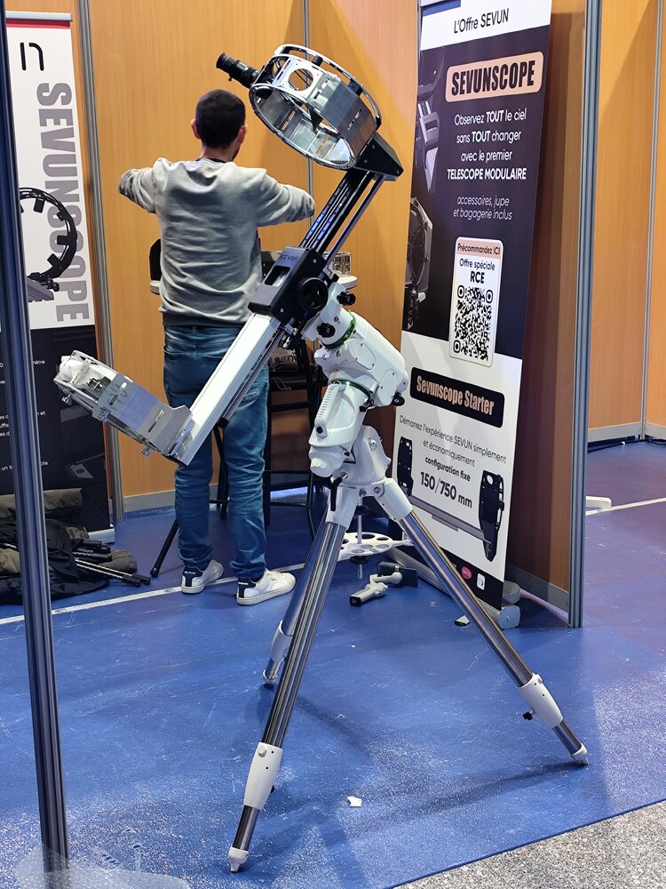 Bonjour, Merci pour votre commentaire. Nous apportons une petite précision car je pense que la photo a peut-être mal été comprise. Les tubes carbones noirs ne sont pas des pièces de structures, ils servent uniquement pour la jupe d'occultation. J'ajoute deux photos complémentaires, la première "tube" ouvert, la seconde avec la jupe dessus. L'ingénierie développée ne nécessite pas d'autres éléments de structure que la structure aluminium. Pour ceux qui sont aux RCE, ils peuvent venir à notre stand pour s'en assurer en venant à notre rencontre. Enfin, nous ajouterons des photos et des vidéos sur notre site et nos réseaux pour expliqier l'ingé et la rigidité Sevunscope 250/1200 Concernant vos questions : Le diamètre du barillet s'ajuste à la taille du miroir, ou il faut en changer ? Quid des secondaires ? Vous comptez en vendre de plusieurs tailles ? Vous pensez vendre une valisette pour le stockage des différents miroirs ? il y a 3 modules primaires et secondaires interchangeable de diamètre 150-200 et 250mm Concernant les optiques (primaire/secondaire), nous proposons un catalogue de mirois (qui va s'etoffer) : l'utilisateur choisit le grade/fabriquant qu'il souhaite. Oui, le Sevunscope sera fourni (dans le prix) avec jupe d'occultation, bagagerie dédié, porte oculaire, oculaire, chercheur et laser de colimation. j'ajoute aussi une photo des modules plus bas. Ne pas considérer l'aspect aluminuim brut comme la finition par défaut, c'est ici un démonstrateur où nous souhaitons montrer l'ingénierie. Idem, pas de pièces d'acastillage sur ce modèle mais il y a ura des éléments d'habillage sur la version définitive évidement. -