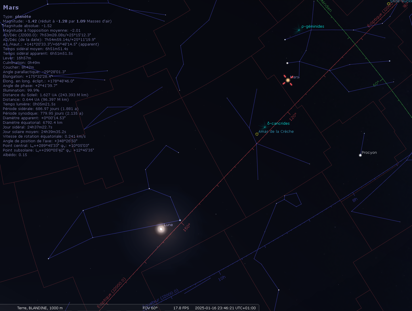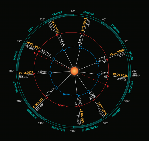 Bonjour tout le monde, Dans le cadre d'une présentation au club, je vais utiliser ce petit graphique pour parler des différentes oppositions de Mars : source : https://www.observatoiredeparis.psl.eu/la-grande-opposition-de-mars.html Ma question porte sur le cercle extérieur. J'ai bien compris qu'il indique la position sur l'écliptique mais j'ai l'impression que les constellations ne correspondent pas à la réalité : Entre 90° et 120° j'ai les Gemmaux dans Stellarium, et pas le Cancer comme sur le graphique plus haut. Quelqu'un saurait-il me dire pourquoi ? Un grand merci d'avance. Geoffrey