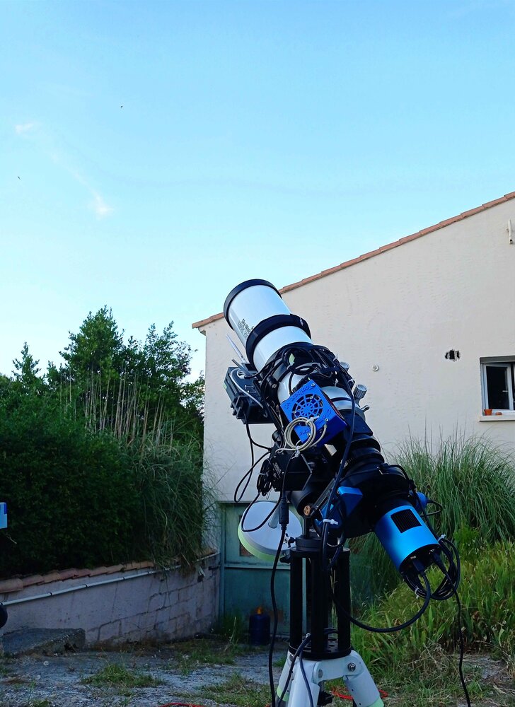 12. Salut 180Vision, C'est ça, le débrancher a chaque utilisation, mais ça ne me dérange pas. Dans mon design j'ai prévu que le changement facilement. Concernant l'alimentation, j'ai une PowerBox faite maison. Le Mini PC c'est du 240V, donc sur secteur. J'ai une monture HarmonicDrive, donc le poids, je m'en fiche un peu. Je suis qu'a 11Kg, je peux aller a 20. Je pense le mettre sur le collier en effet, même idée. Ouais ! GPU externe, c'est ça qui m'attire !