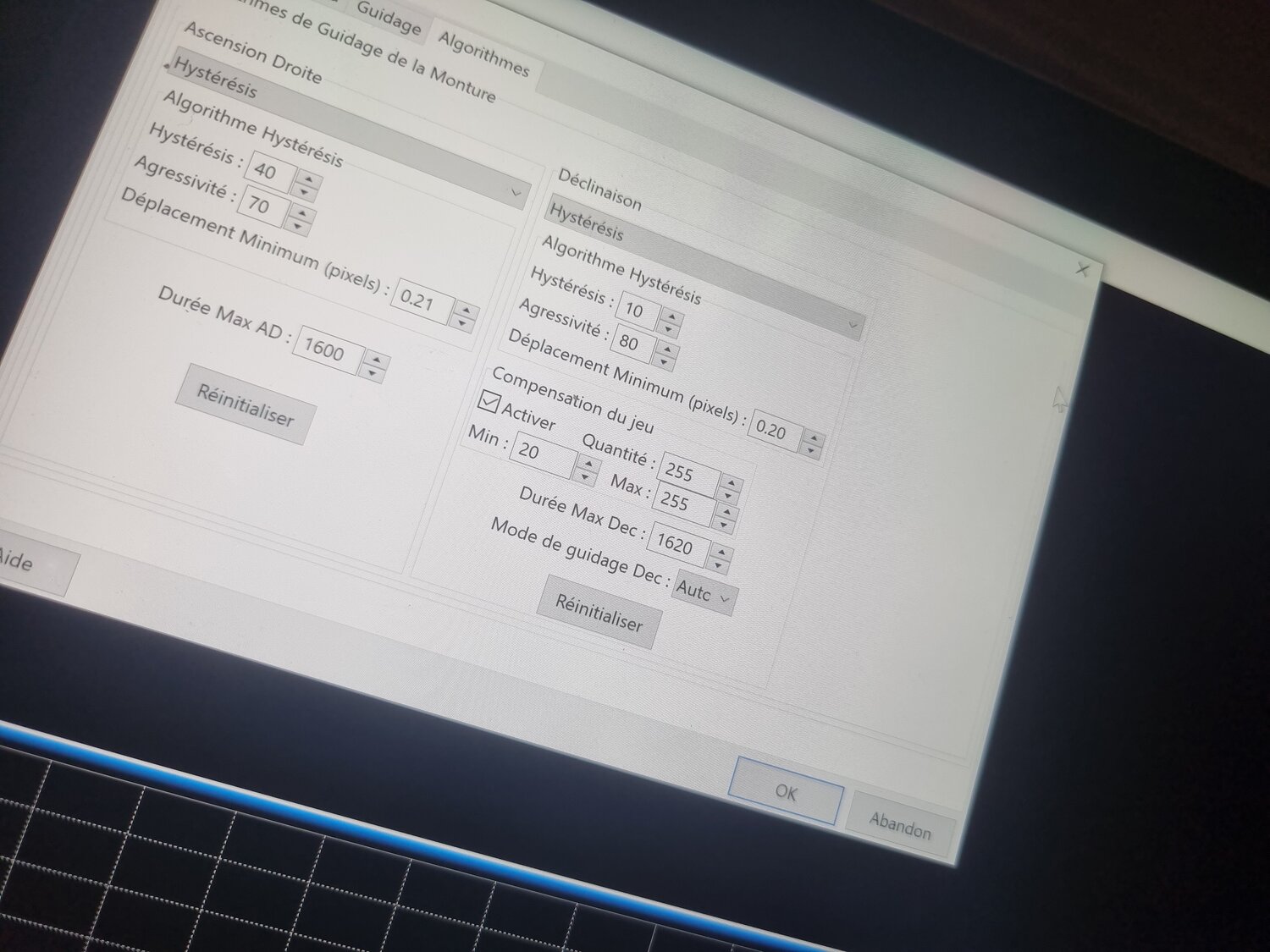 Mon problème c'est que je guide en moyenne à 1,20 ce qui n est pas normal pour une eq6 r qui devrait facilement guider à 0,5... Mon échantillonnage de 0.88 fait que je n'arrive même pas à dépasser les 2 min sans filées. Sinon okay ça marche je chercherai sur google les tutos merci