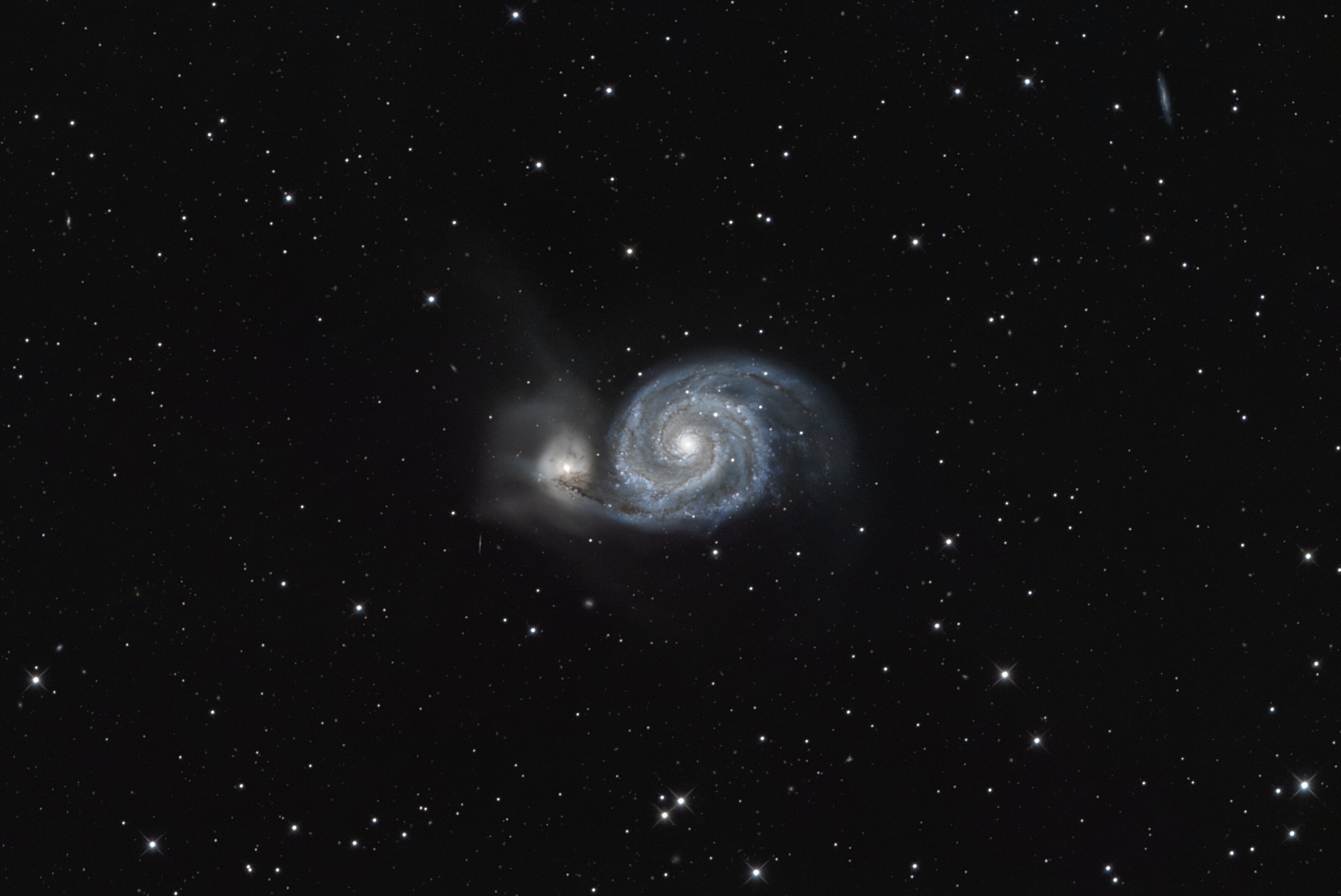Comme chaque année je tire le portrait de m51, un grand classique dont on ne se lasse pas . 1ére image croppée et seconde image avec le newton en Lrvb (L 32 X 300 S ET 6 X 180 S pour chaque couche rvb avec asi 2600mm) et troisièeme image avec la red cat 71/350 + asi 2600 mc (20 x 420s) J'espère pouvoir ajouter quelques fits ces jours prochains