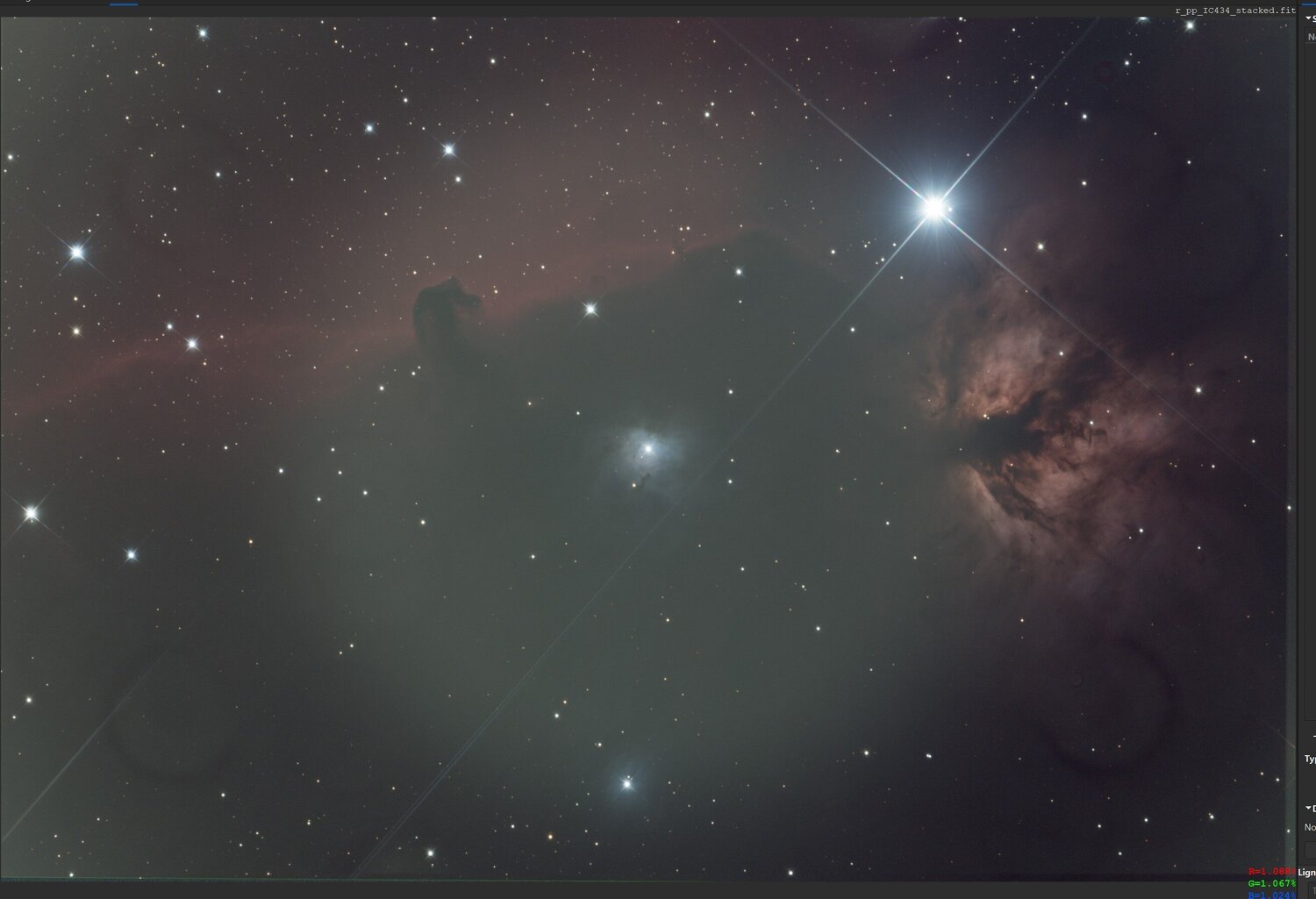 Bonjour à tous, Je suis encore et toujours en pleine phase d'apprentissage avec mon newton ... et les difficultés se multiplient. Ci dessous j'ajoute la copie d'écran d'un stack de horsehead nebula (acquisition de 6 x 300 s avec une 2600 mc pro et un newton 250/1000 mm) traité avec des flats et des darks. Au centre de l'image il y a un donut avec autour un cercle concentrique. Je ne crois pas qu'il s'agisse d'une poussière. J'en suis même quasi certain et j'ai vaguement l'impression que ce donut pourrait être le reflet de mon miroir primaire avec l'ombre du secondaire. En revanche je ne comprends pas comment cela est possible et à quoi cela est dû ? Qu'ai je fait qu'il ne fallait pas faire ou ai je omis de faire quelque chose ? J''espère que les plus expérimentés d'entres vous pourront m'aider car je n'entrevoie aucune solution. Bon ciel à tous