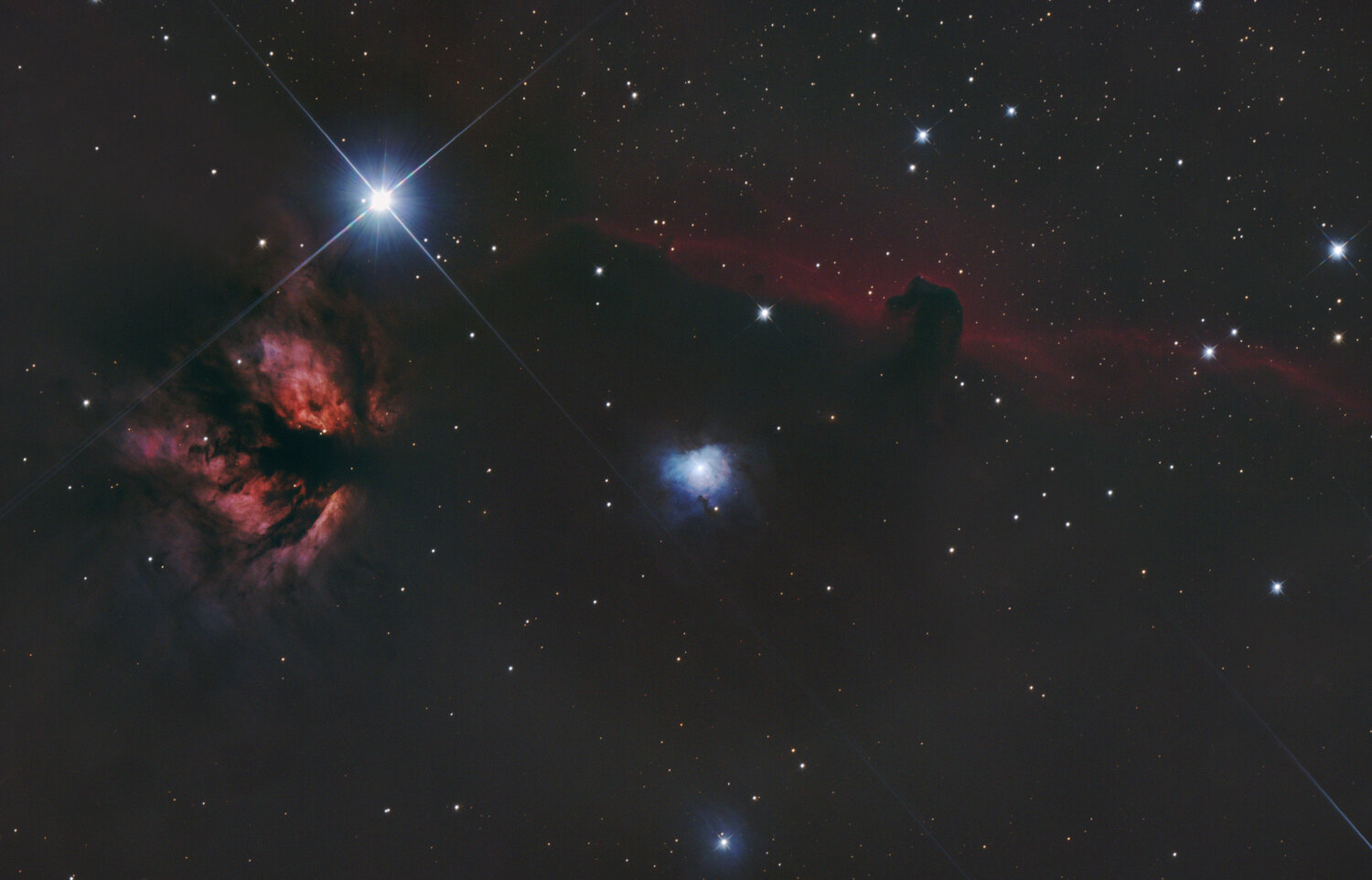 Les pleïades en 180 s x 30 N 250/1000, asi 2600mc. Je commence à maîtriser un peux mieux mon newton et il me semble avoir progressé sur la collimation. Toutefois je trouve qu'il y a encore quelque chose qui cloche dans mes images. Je ne sais pas exactement quoi et si vous avez des idées de ce qui peut être amélioré, je suis preneur. Je trouve notamment que mes étoiles font un peu la tronche (manque de rondeur). Par ailleurs j'utilise donc ce newton 250 mm/F4 depuis 2 mois et je suis un peu surpris car je ne le trouve pas beaucoup plus rapide que ma lunette à FD7.