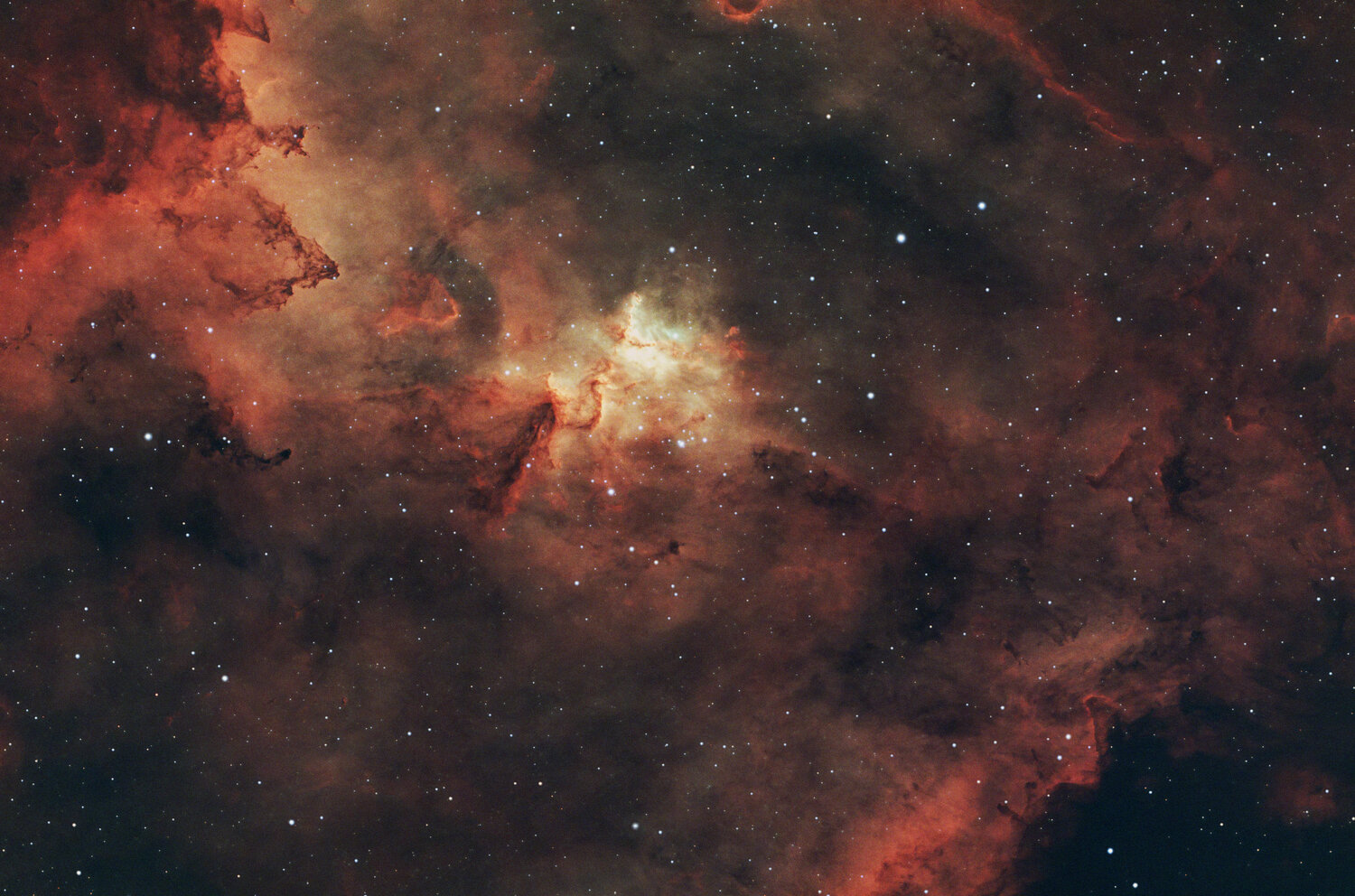 Enfin une nuit claire dans l'Oise !!! Pourvu que cela dure (un peu) .... Donc hier soir j'ai ressorti mon matériel pour viser la nébuleuse de l'âme. Lulu askar phq 1057/151 avec réducteur 0,7x + asi 2600 mc sur cem 70. Guidage vario bresser 240/61 et phd2 + asi 220 mini. 55 brutes x 300 s avec filtre optolong L ultimate. Traitement siril + photoshop