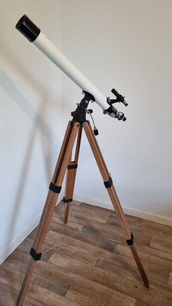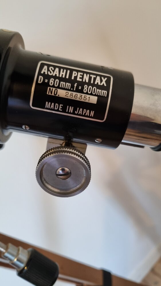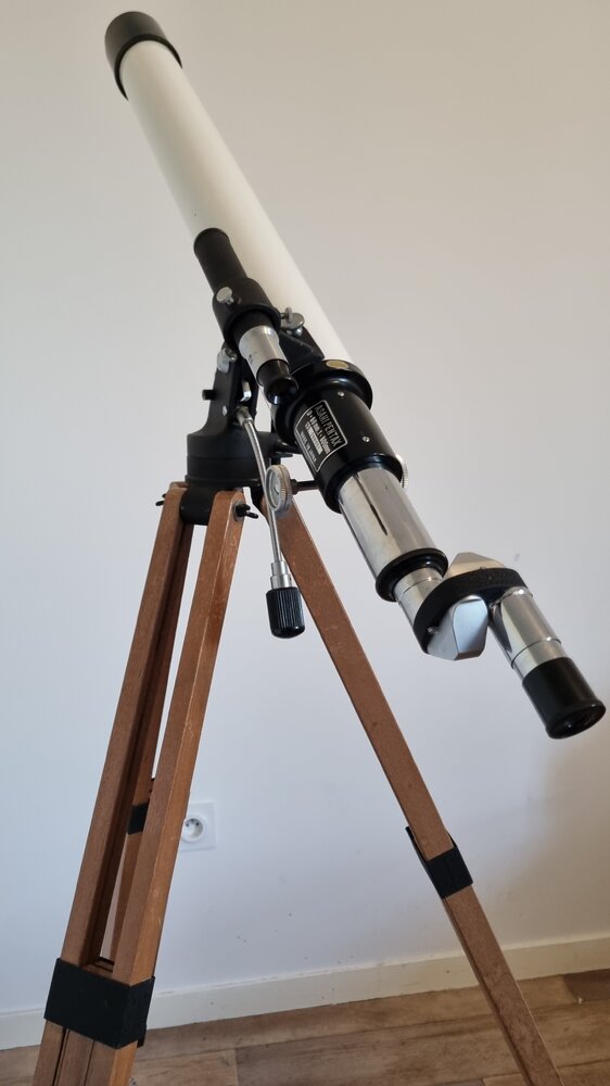 8. Salut la communauté Astro Vintage... Je viens de faire l'acquisition d'une jolie petite lulu 60/800 Asahi Pentax Je l'ai acheté dans sons jus, complete avec sa boîte en bois, sa notice et ses accessoires.... A nettoyer et redonner un petit coup de neuf.... j'ai testé vite fait sur la lune et je suis bluffé par la qualité de l'image... Pas de chromatisme visible et un piqué terrible ! Wahouuuu....✨️ Bon....cela donne envie de la remettre en état ! Les accessoires comme le redresseur est une pièce superbe ! Bon...je m'y met et à bientôt pour les essais et photos de la restauration... 😉