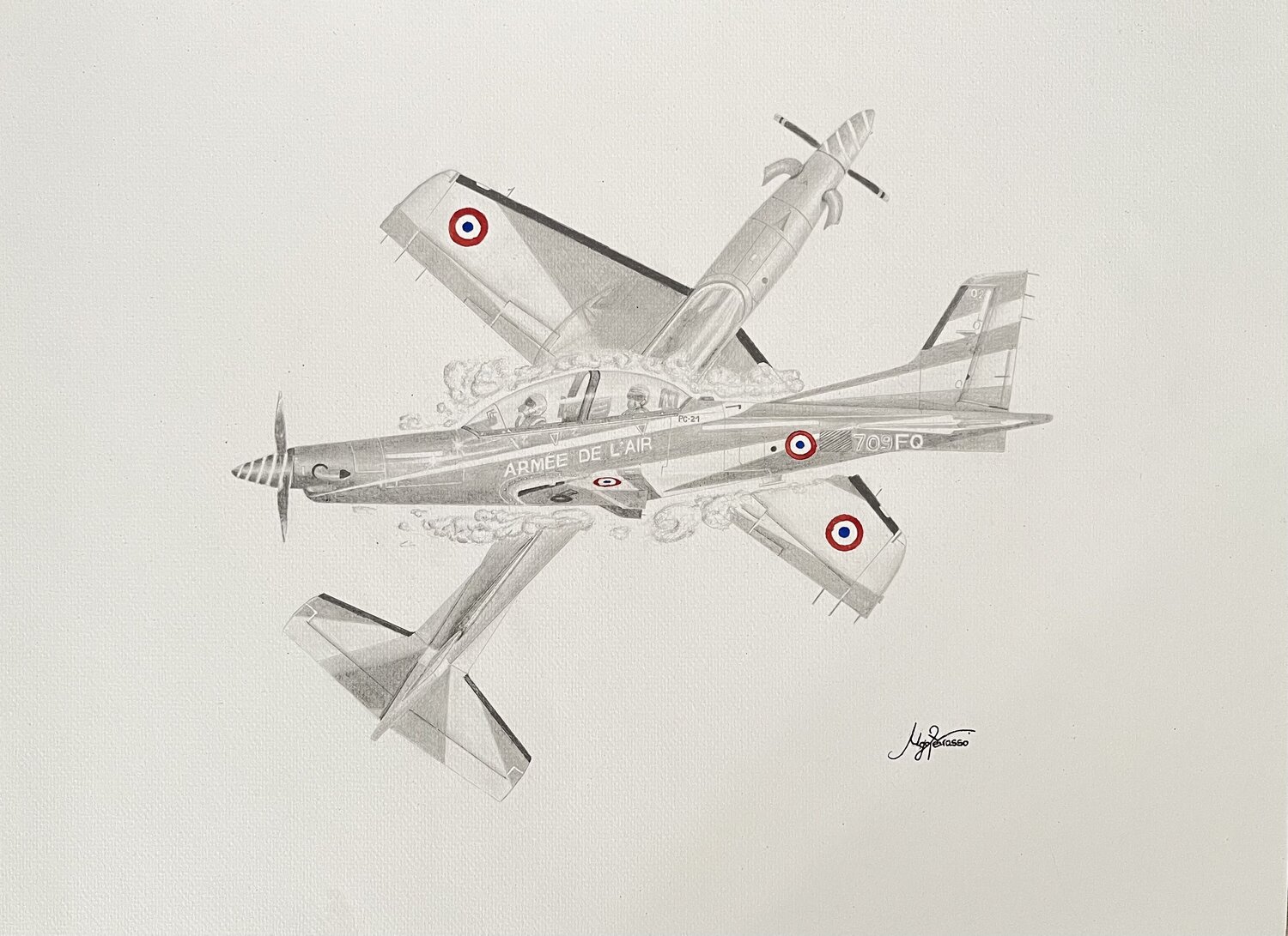 Merci énormément ça me fait beaucoup, beaucoup plaisir 🙇♂️ Je suis content de voir que mon travail sois apprécié aux yeux d’autres personnes! 🙇♂️🙇♂️ Alors, le temps passé sur chaque dessin dépends de sa taille et de son environnement! Prenons l’exemple du Concorde que j’ai dessiné (vous pouvez le voir sur mon compte Instagram ugo.peirso), il m’as facilement pris minimum 80h de travail dessus! Tandis que celui-là environ une quinzaine d’heures! Mes techniques de dessins, déjà je ne travail qu’aux crayons graphites! Du 4H au 14B. J’essaie de me rapprocher au plus près du réalisme, donc je travail 97% du temps sur photo. Ce qui me permet de ne rater aucun détails, et d’être 100% crédible sur les jeux de lumières! Ceci dit, j’ai déjà essayé de dessiner un avion avec ses nuances de tête. Pour les textures, ce sont des connaissances. Le dessin je l’ai appris en autodidacte. Donc je suis allé piocher à droite et à gauche des informations pour savoirs comment dessiner une texture ou autre. Mais c’est surtout des essaies, des expériences sans savoir ce que ça va rendre une fois fini. Par exemple, sur ce dessin où l’on voit la toile épouser la structure de l’avion, c’était une première pour moi et j’y suis allé les yeux fermés. Je l’ai dessiné à l’aide de mes connaissances et de mes acquis que j’ai gagné aux fils des années!