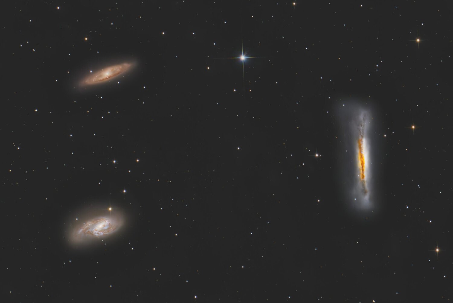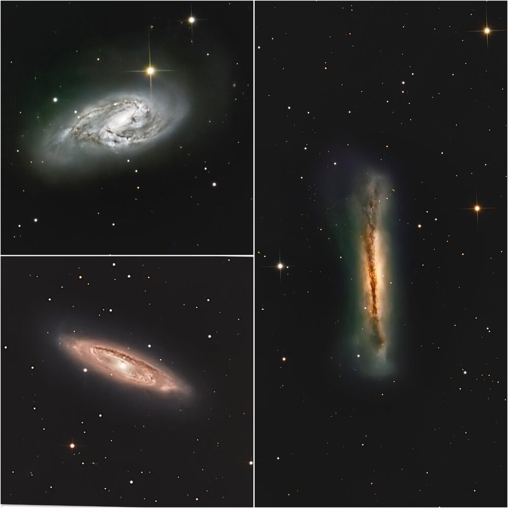 Hello, ici une nouvelle façon de partager le Trio du Lion, chacune des 3 gal traitée individuellement pour apprentissage Pix (masks, lum, etc) et certains curseurs (S-curve) tirés volontairement. - 150/750, prise en oct 2024 avec APN 700D, 60 x 180sec. À reprendre avec la cam 071mc dès que les conditions le permettront. Enjoy 😊