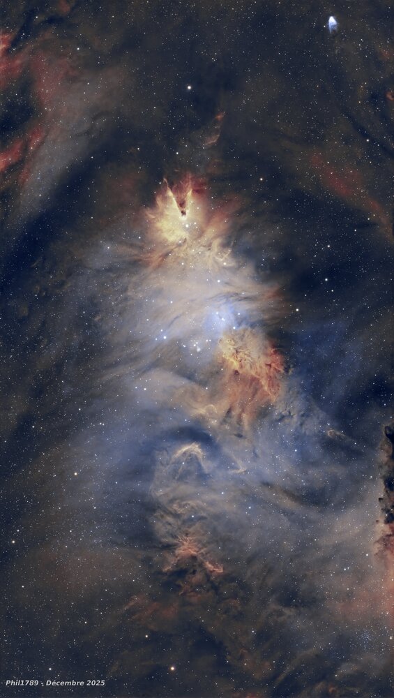Hello, Bon pas très original en cette période de l'année, NGC 2264 Christmas tree + cone 1ere nuit claire sans risque de pluie depuis 2 mois, 5h30 shooté, 5h conservés HEQ5, Askar SQA55, Uranus C Pro, guidage au diviseur Filtre duoband SVBony en 7nm (si quelqu'un a testé leur version 3nm ça m’intéresse de savoir ce qu'il vaut ) 99x180s, traitement Siril + Pix avec BlurX & Graxpert denoise. Un peu trop saturé je pense. Seeing correct malgré 98%/99% d'humidité (d’où la cible, j’évite de shooter au zénith en bord de Manche) Bon ciel & bonnes fêtes a tous, Philippe