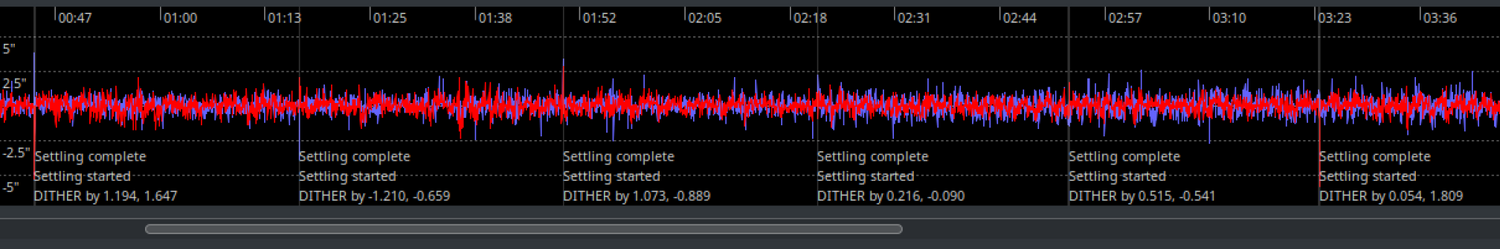 15. (EDIT: mauvais dark initialement posté, corrigé avec le dark 1-channel) Bonjour, Je pense que c'est un classique, les posts pullulent sur internet, j'ai de méchantes trames dans mon fond de ciel. La ou je suis paumé, c'est que tous les posts que j'ai ouvert pointent vers le dithering pour résoudre ca. Et le dithering, ben PHD2 s'en charge pour moi et le fait regulierement (settings par defaut, screen de cette nuit ci dessous). Captures par Elos/Stellarmate+PHD2 sur une PlayerOne Uranus-C Pro, poses de 180s a gain 220, offset 30, temp -15°C. J'utilise seulement des darks "standard", pas de bias ni de flats (jamais reussi a faire des bias corrects, c'était encore pire avec), Alors qu'est-ce que j"oublie ? refaire les darks? besoin de bias? Je ne vois pas l'utilité de flats sur ces trames mais je me trompe peut etre? (Au cas ou j'ai joint une brute et mon master dark) Merci d'avance pour vos conseils! Philippe M81-Cigar_Light_064.fits dark_stacked.fit