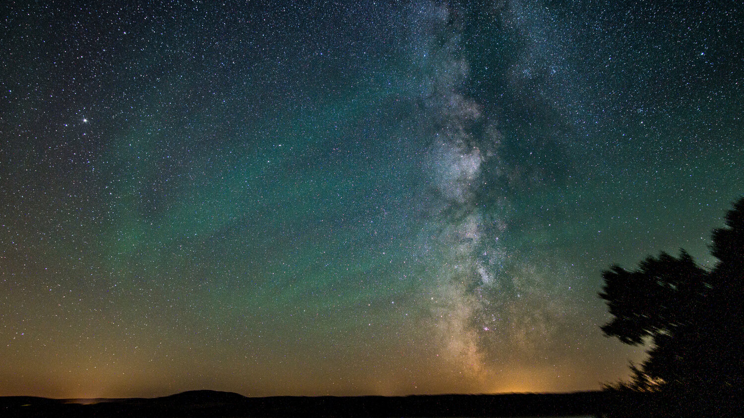 J'ai longtemps pensé que cette photo était ratée (mauvais réglage ou pollution lumineuse), notamment à cause de ces nébulosités vertes formant des bandes dans le ciel.