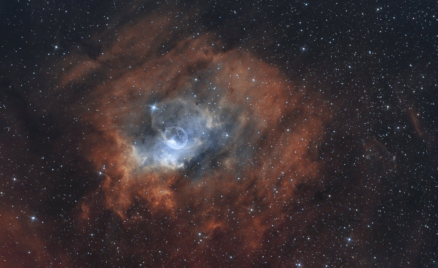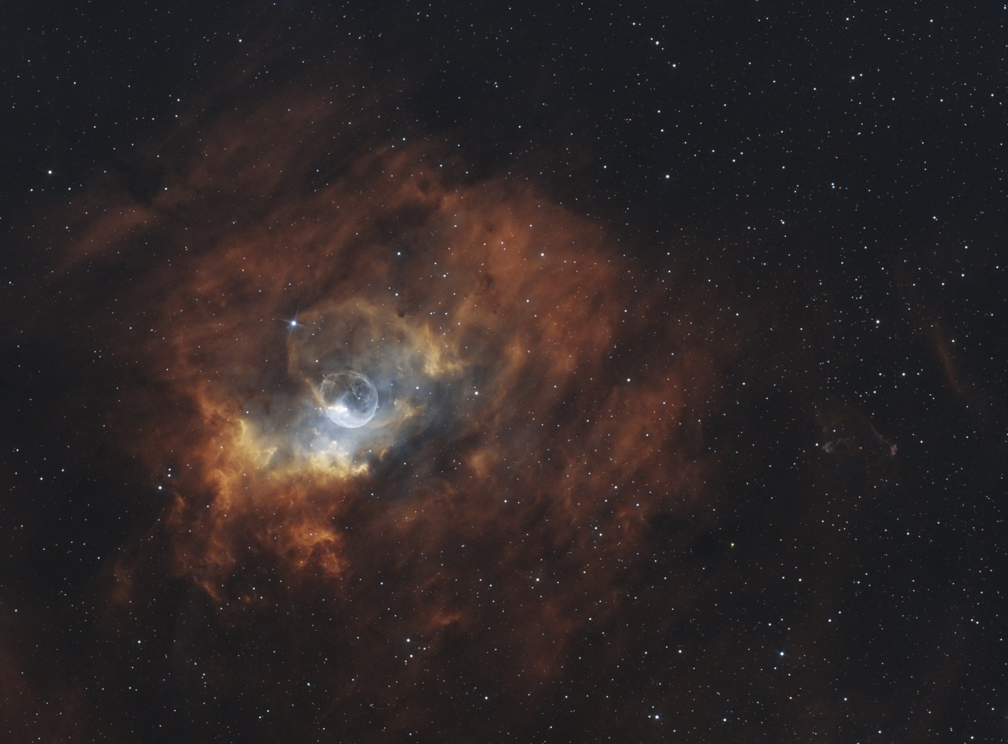 14. Salut, une petite bubulle faites sur 2 nuits, 9h de poses au total avec 300s secondes en unitaires avec mon 200/800 - asi 2600 mc pro et filtre l-ultimate dégouté pour les grosses étoiles mon cadrage n'était pas parfait lors de la deuxième nuit, vivement le rotateur de champs et je n'ai appris que plus tard qu'il y avait quand même moyen de faire une rotation avec l'asi air traitement sous pix