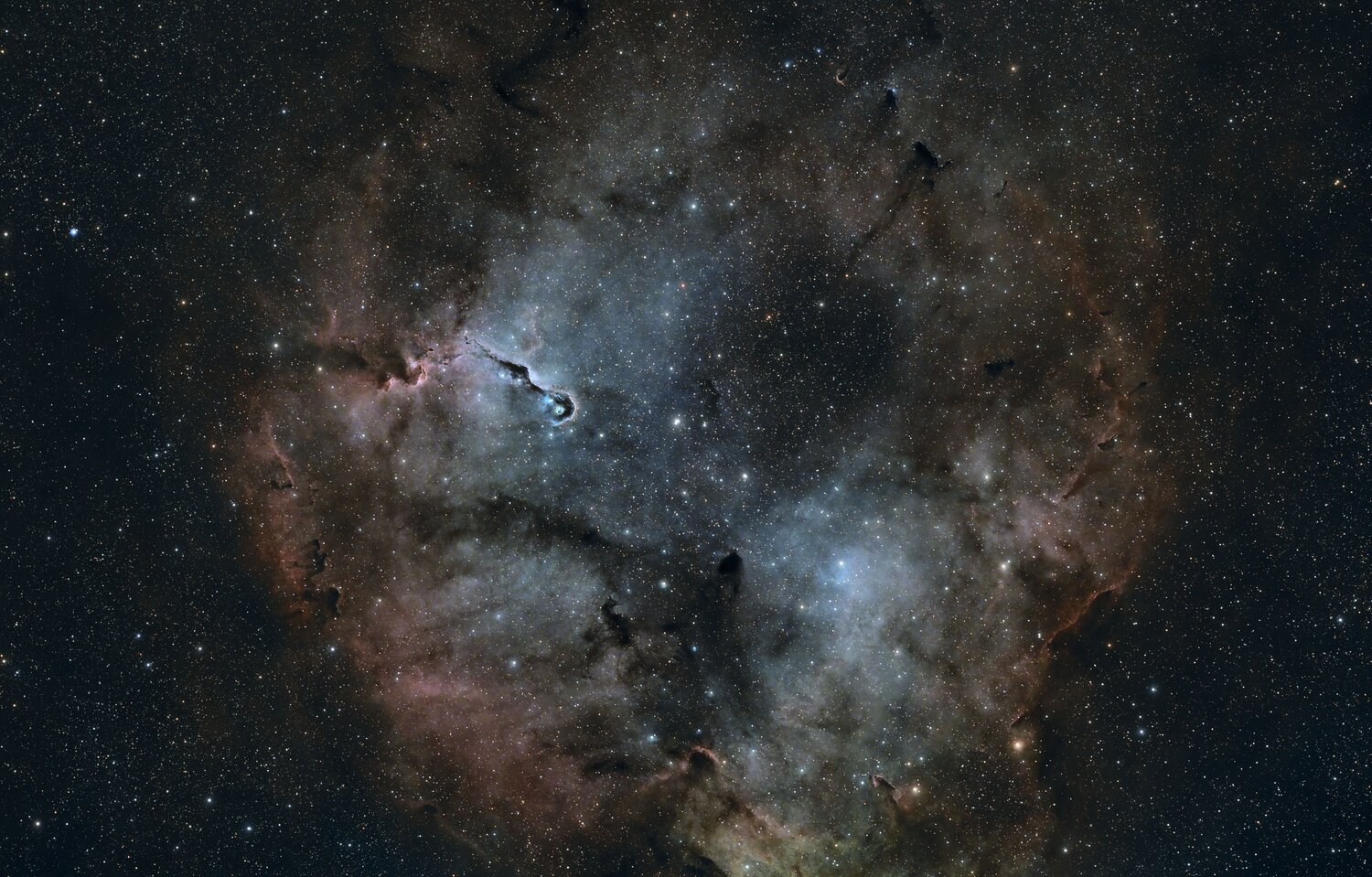 Bonjour, un traitement sur ic 1396 avec un total de 30poses de 300s Il s'agit de ma première photo avec ce setup Askar fra 400 + asi 2600mc azeq6 pro Filtre L-pro Blurxt, noisext, starxt sur pixinsight le premier traitement est une Version HSO avec le script Bill's Le second est une version maison en séparant les couches, en gardant les R et G et mix sur pixelmath Je n'arrive pas à me décider sur la plus belle photo