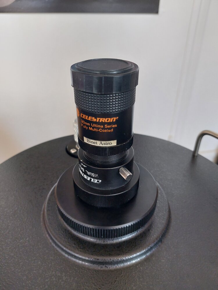 Merci et merci de ta réponse ! J'utilisais un oculaire de 30mm, mais j'ai aussi essayé avec 18mm et 9mm pour le même constat. Faute de cibles plus loin depuis ma chambre, je vise une fenêtre d'un bureau à 170m ou des antennes à 100m. Avec les oculaires j'arrive à atteindre le point de MAP (de meilleure netteté plutôt puisque la collimation est loin d'être parfaite), mais je suis à 4-5 tours de molette d'être en butée du primaire. Et quand je remplace l'oculaire par une caméra, impossible d'atteindre ce point de meilleure netteté. Je pourrai réessayer sur une étoile, mais j'ai peur d'arriver au même résultat où je n'arrive pas à faire la MAP (même approximative vu la collimation) sur une étoile -