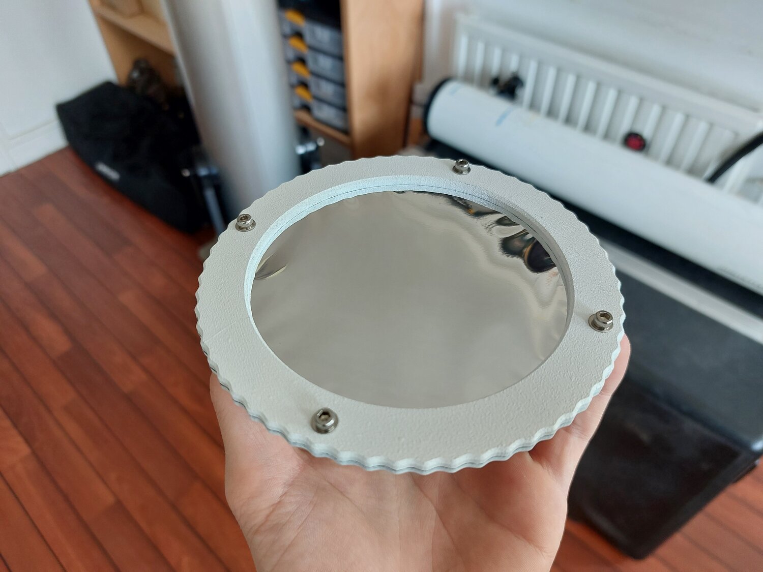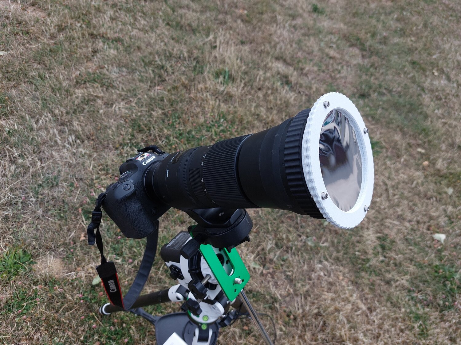Bonjour tout le monde ! Premier vrai bricolage pour de l'astrophoto avec un reflex. Dans mon asso étudiante, on a un magnifique objectif 150-600 qui s'utilise très bien pour faire un peu d'astrophoto avec un setup assez léger (sur une monture StarAdventurer 2i WiFi). Pour l'utiliser pleinement et le plus précisément possible, j'avais envie de pouvoir lui monter un masque de Bahtinov. Et en vue d'un prochain transit de l'ISS devant le Soleil près de chez moi, je voulais aussi pouvoir lui monter un filtre solaire. Mais quitte à acheter un filtre solaire, je me suis dit qu'il fallait lui faire un support standard que je puisse facilement monter de manière sûre sur n'importe quel objectif photo. L'idée que j'ai eu est donc d'avoir un adaptateur entre un objectif photo (comme un pare-soleil) et un pas de vis M100. Ainsi, chaque filtre ou masque est monté avec un simple pas de vis M100 et peut donc être facilement interchangé entre objectifs. Et grâce à l'impression 3D, tout ça est très facile à fabriquer ! Si ça vous intéresse, voilà les différents modèles 3D : Masque de Bahtinov : https://www.printables.com/model/535645-m100-bahtinov-mask Porte filtre solaire : https://www.printables.com/model/535649-m100-solar-filter-holder Adaptateur pour le Sigma 150-600 : https://www.printables.com/model/535654-sigma-150-600-m100-adapter Boîte pour le filtre solaire : https://www.printables.com/model/535658-m100-solar-filter-box Et pour finir quelques photos : Filtre solaire monté sur le 150-600 et la StarAdventurer 2i WiFi Masque Bahtinov M100 Filtre solaire M100 Boîte pour le filtre solaire Photo du Soleil avec quelques tâches solaires