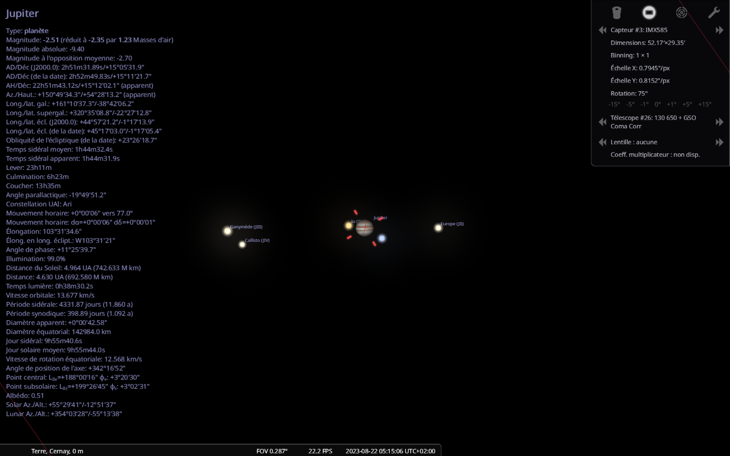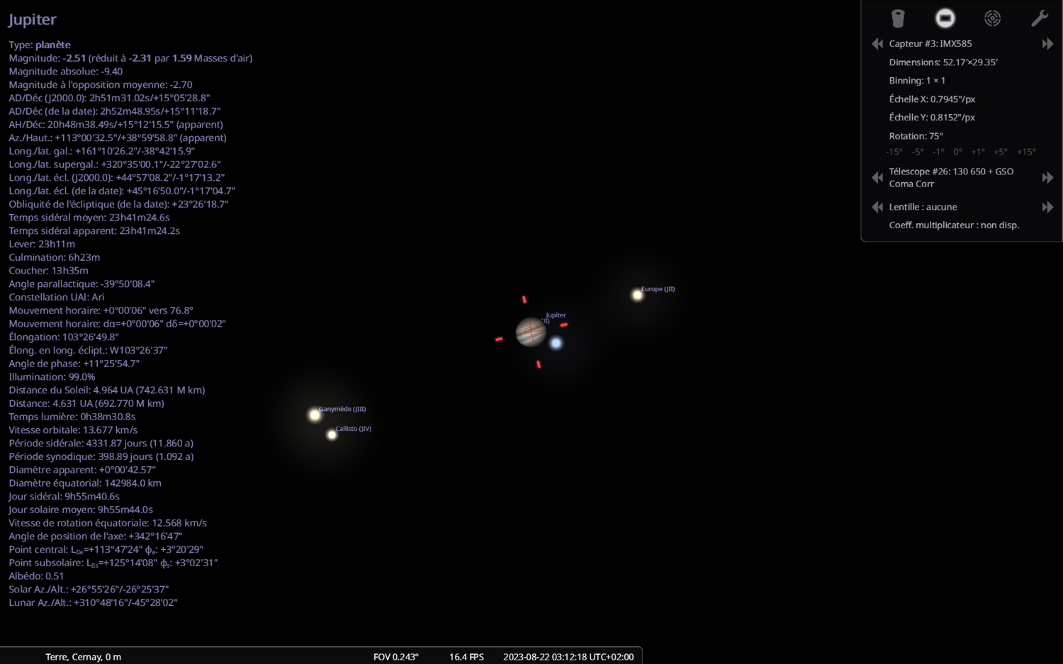 24. Vue dans stellarium le 22/08/2023 3h12 locale : Avec une petite rotation : Possible de faire un upload sur Astrometry.net ? As tu une seule photo ou bien une sequence ?