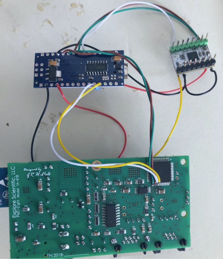 - modification elec iExos 100 : long sujet.... Mon exemplaire avait une erreur de +/- 3 arcsec avec une periode de 1s. Après pas mal de travail : division /4 de l'erreur . Elle etait liée au controleur de moteur pas à pas choisi par Explore Scientific (reroutage, carte de controle séparée, etc...).