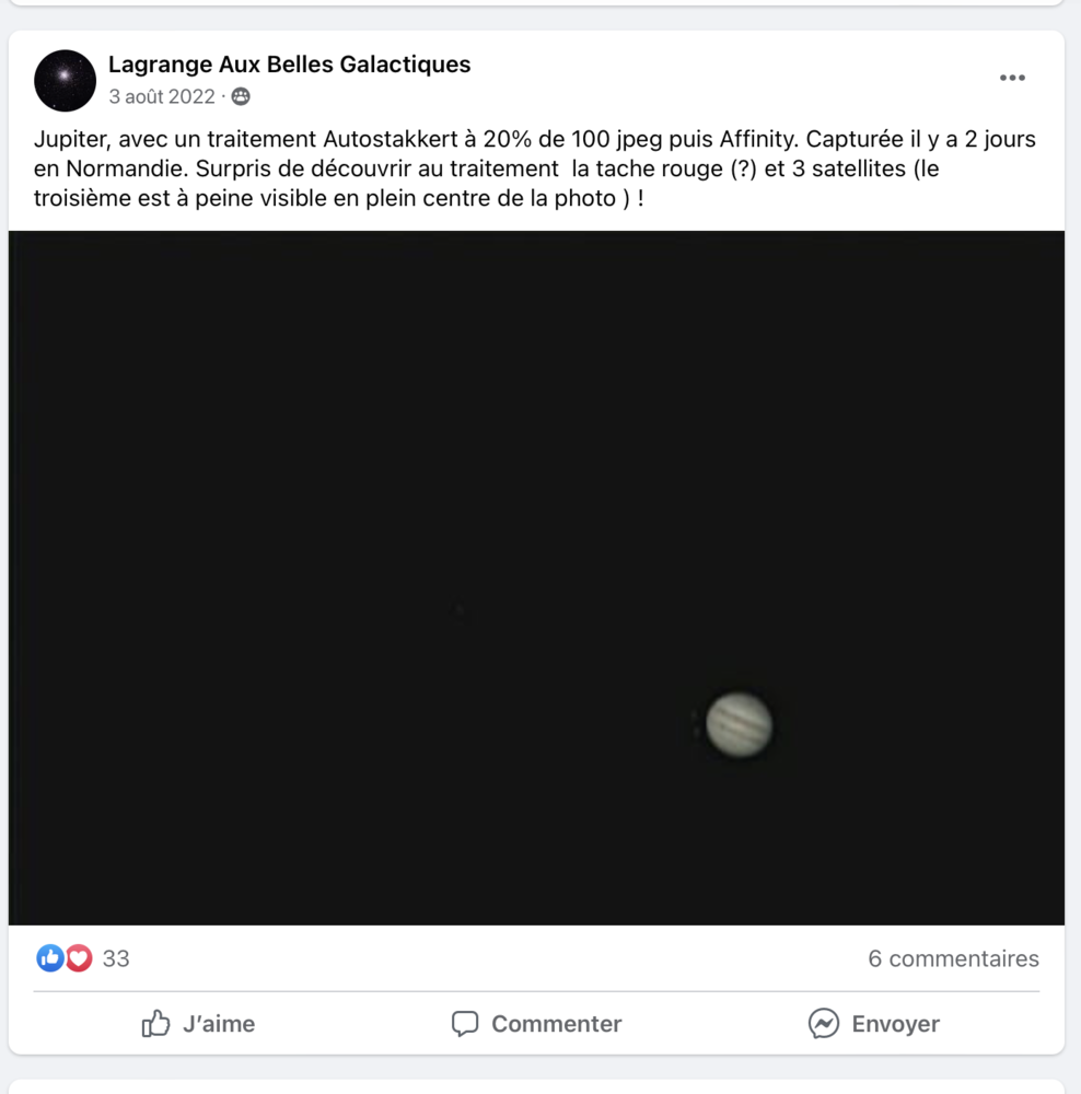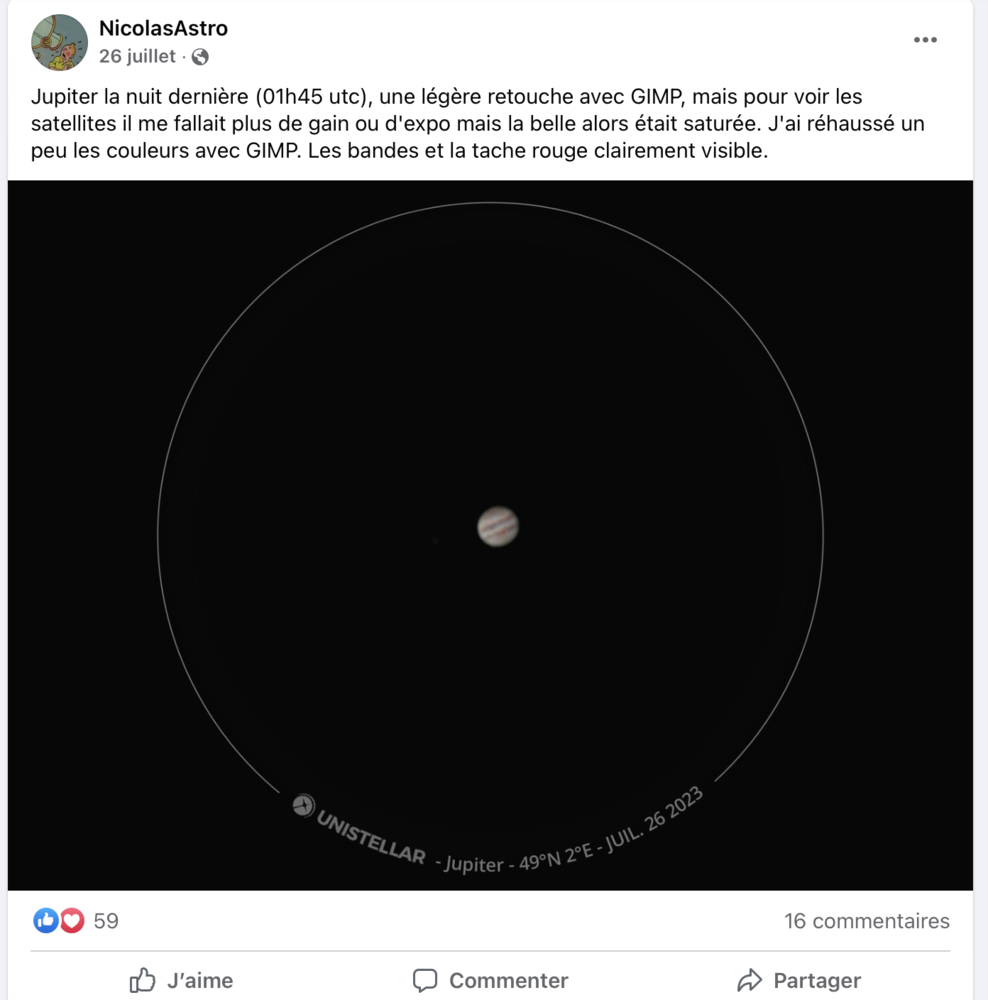 Là, ne serait-ce que l'image de Jupiter sur Unistellar, c'est flou mais au moins il y a des couleurs avec la tache rouge! Le Vespera est plus petit, donc sûrement moins défini encore.