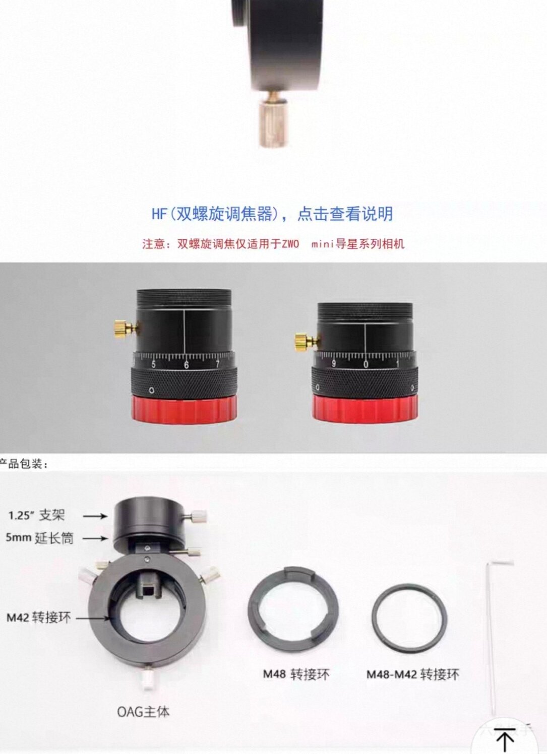 Petite maj : sur un des sites revendeurs chinois il semble indiqué que le porte oculaire hélicoïdal n'est compatible qu'avec les versions mini des caméras zwo -