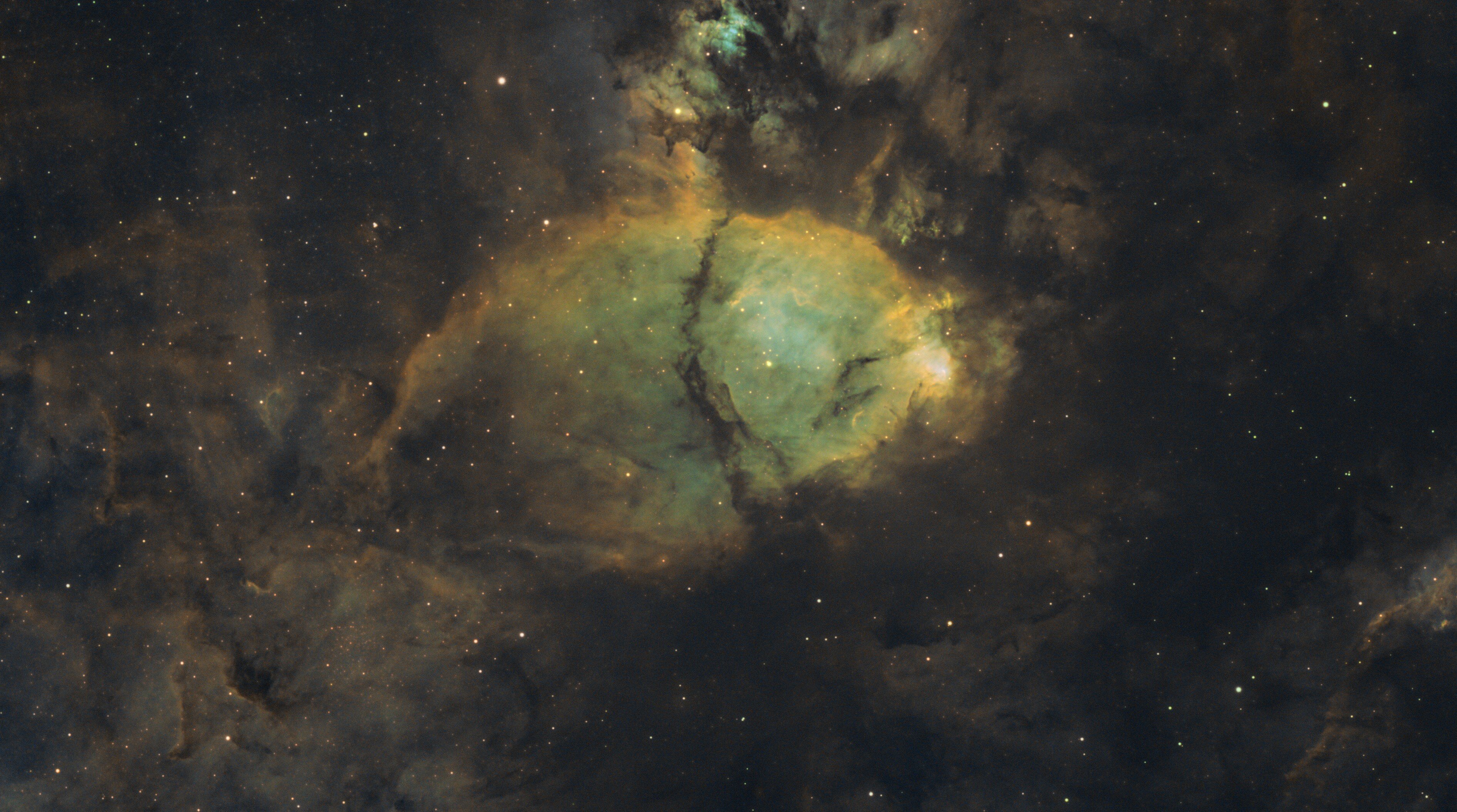 ça faisait longtemps que je n'avais pas galéré comme ça, entre le calcul des "filter offset" qui ne marchait pas et un guidage catastrophique, j'ai passé deux heures entre mon ordi et le télescope pour essayer de tout régler, au final je m'en suis à peu près sorti et malgré l'annonce de pas mal de nuages j'ai réussi à faire une image de la tête du poisson. Il faudra que je rajoute du temps, mais encore un fois je suis impressionné par ce qu'on peut sortir avec la MiniCam8M S: 21 x 240s => 1h24 H: 24x240s => 1h36 O: 13x240s => 0h52' (pas mal de déchets)