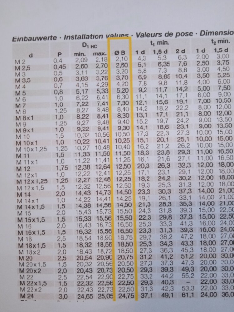 Bonjour a tous, Un petit poste qui est une notion acquise pour la plupart mais qui peut être sera utile a d'autres 😁 "La pose d'un helicoil" Un copain m'appelle ce matin car embêté avec son taraudage HS.. la pièce n'a rien a voir avec l'astronomie mais le principe est le même alors pourquoi pas partager... Ici il s'agit de réparer un taraudage M2.5 profondeur 5mm dans de l'alu.. Donc pour les outils: - un forêt diamètre 2.6mm (je poste aussi le tableau de correspondance 😉) - un taraud M2.5 pour filet rapporté - un tourne à gauche - une pochette d'hélicoil. Si dessous le trou taraudé HS Ce centrer dans le trou et contre percer avec le forêt diamètre 2.6 Tarauder si besoin avec un peu d'huile de coupe... Assurez vous d'être bien droit