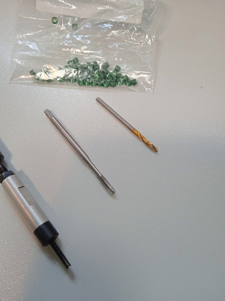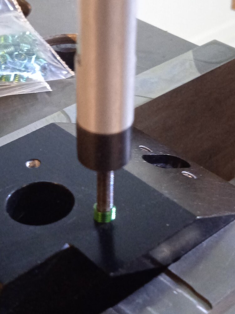 Monter l'helicoil avec un outil de pose... Une bonne vue une dremel une vis M2.5 et un peu de patience... C marche aussi.. 😁😉 ça ce bricole très bien... Dans l'idéal il faut placer le filet rapporté a quelques dixième en dessous de la face de montage... Un petit coup sec pour casser l'entraîneur et c'est tout.... C'est juste un rappel donc je suis dispo si besoin de plus de détail.... 😉😉 Bonne journée à tous.... Ici le trou fait 5mm de profondeur donc j'ai monté un filet rapporté M2.5x1.5D