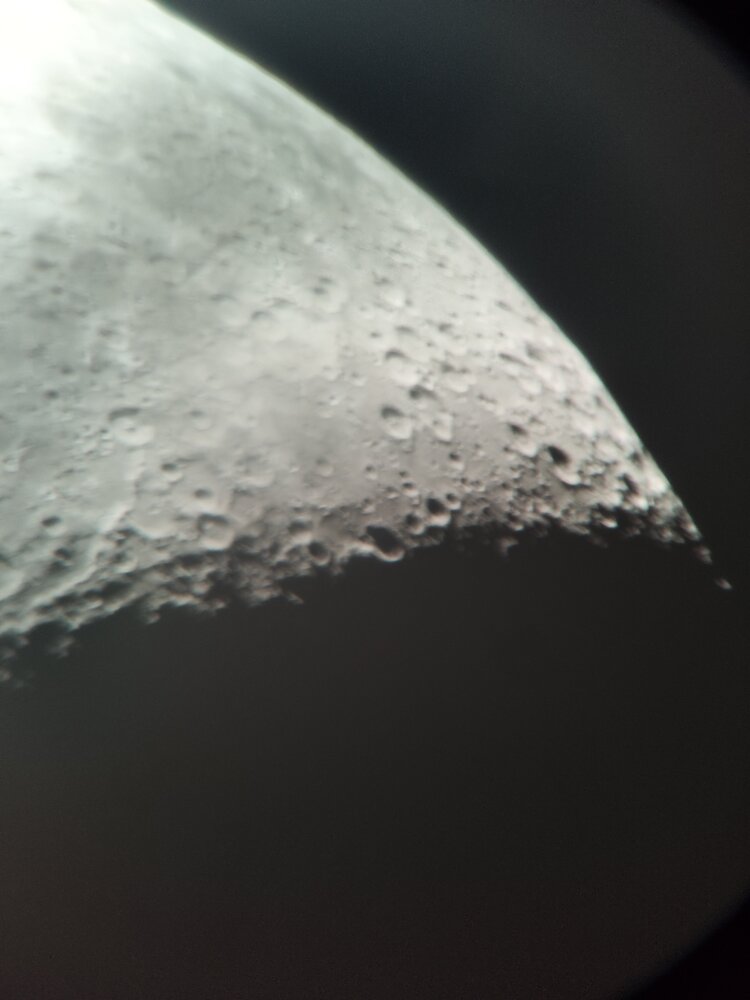 Salut à tous, Grâce à vos conseils, j'ai réussi à faire ma première observation dans de bonnes conditions, voici quelques clichés Oculaire 25 mm Oculaire 4.7 Le ciel était un peu nuageux donc un peu flou ... J'ai plein de questions : Je vous rappelle mon matériel : 1 qté BRESSER Messier 10" Télescope Dobson 254mm 1 qté Support de Smartphone BRESSER pour Télescope à Oculaire 1,25'' 1 qté EXPLORE SCIENTIFIC 82° Ar Oculaire 11mm (1,25") 1 qté EXPLORE SCIENTIFIC Kit de Filtres 4 Lune & Planètes à partir de 200mm (8") 1 qté EXPLORE SCIENTIFIC 82° Ar Oculaire 4,7mm (1,25") 1 qté Lampe de poche à lumière rouge ASTRO R-LITE Explore Scientific Je pensais ajouter ceci, mais je voudrais vos avis éclairés : Réglage fin de la molette : https://www.bresser.de/fr/Astronomie/Accessoires/Systeme-de-demultiplication-1-8-Messier-Hexafoc-BRESSER.html Multiplicateur de focale : https://www.bresser.de/fr/Astronomie/Accessoires/Lentilles-de-Barlow/Multiplicateurs-de-focale-5x-31-7mm-1-25-EXPLORE-SCIENTIFIC.html Merci