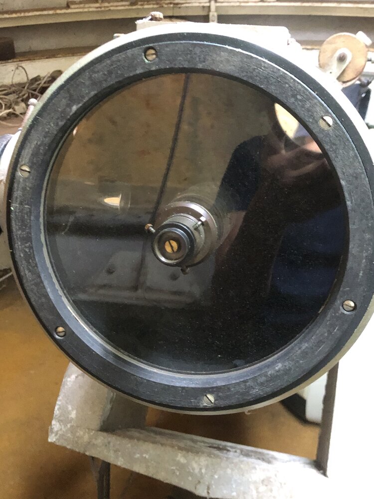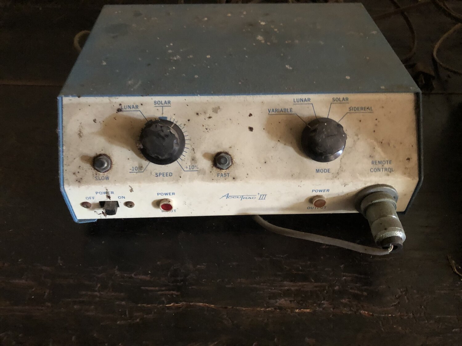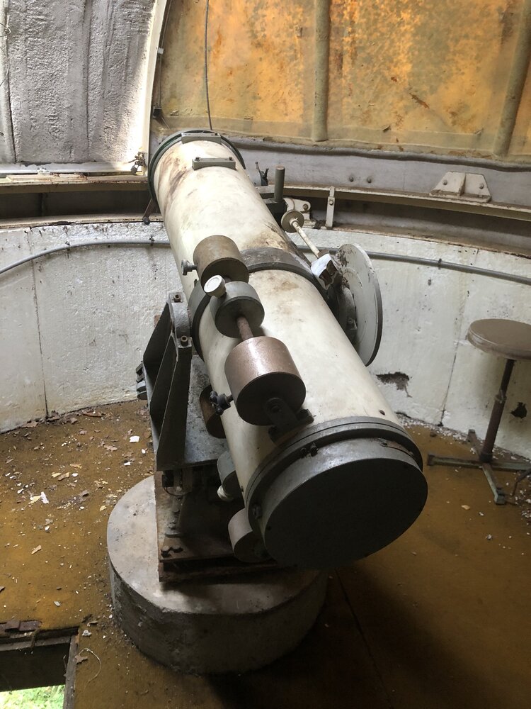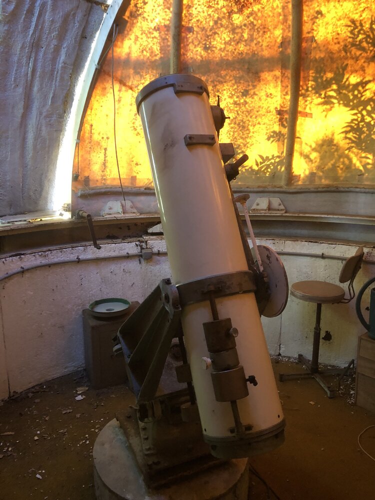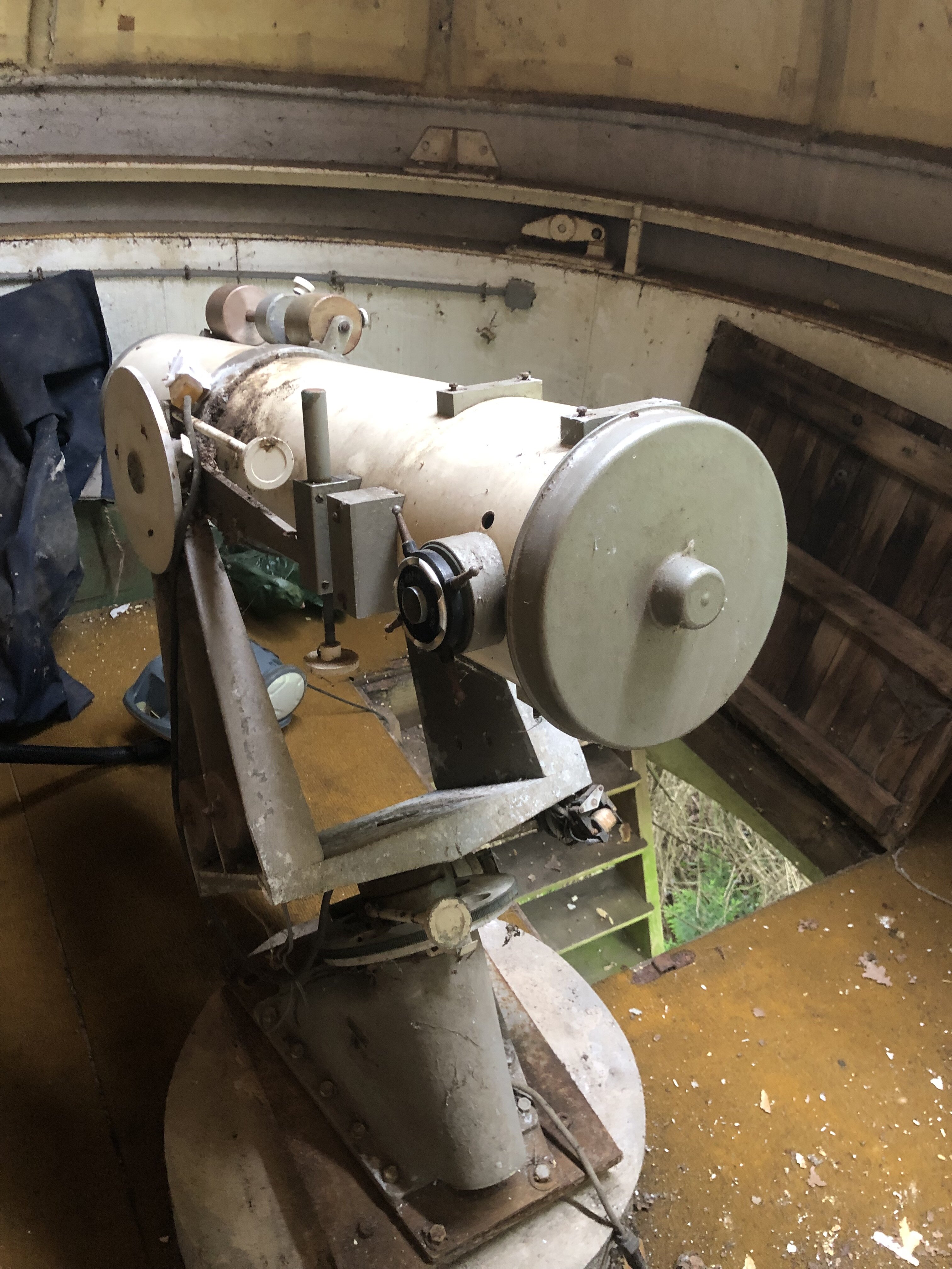 Je vous remercie de vos messages et du lien vers le Club Vintage et les télescopes Mevolhon. Le projet a commencé par un nettoyage de l'environnement, je dois faire l'inventaire des objet présents puis nettoyage et protection du télescope et de sa base, la suite dépendra des contacts et des moyens. La coupole fait 4 m de haute pour un diamètre de 3m, construite en béton avec un pied central soutenant le télescope, avec le haut en fibre, elle est motorisée. Mon inquiétude serait plutôt sur les parties "plastiques" qui pourraient avec le temps, s'effriter ou casser, donc aucun démontage seulement protéger. La plupart des vis et écrous montrent une oxydation mais le pied et le télescope coulisse sans soucis, il est motorisé et possède un éclairage (?). Je suis conscient que l'investissement sera conséquent mais il sera fait dans le temps selon mes moyens. La largeur est de 265mm mais la "vitre" fait 200mm. Voici quelques demandes: - Est-ce que je dois ouvrir un nouveau sujet dans l'astronomie vintage - Comment trouver des contacts - L'optique étant importante, le fait d'être resté inutiliser pendant 40 ans, Y a t'il une détérioration possible Il y a aussi ces 2 appareils dont je ne connais pas l'utilisation. Je joins de nouvelles photos Pour info, je suis situé en Essonne. Merci encore de vos conseils la longueur du télescope est de 118cm -
