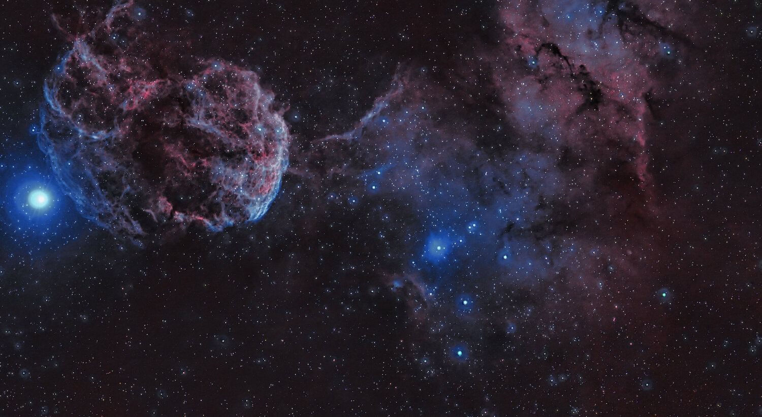Il faut se battre avec le chromatisme bien visible sur les étoiles brillantes, mais ce couple lunette/caméra me surprend par sa capacité à capter du signal dans les zones sombres. Voici 2 photos prises environ sur 2 h-2h30.