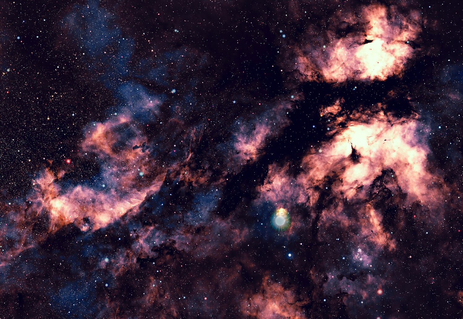 La même nébuleuse avec 50 poses de plus capturées lors d'une autre nuit et un traitement HOO sous Siril. -