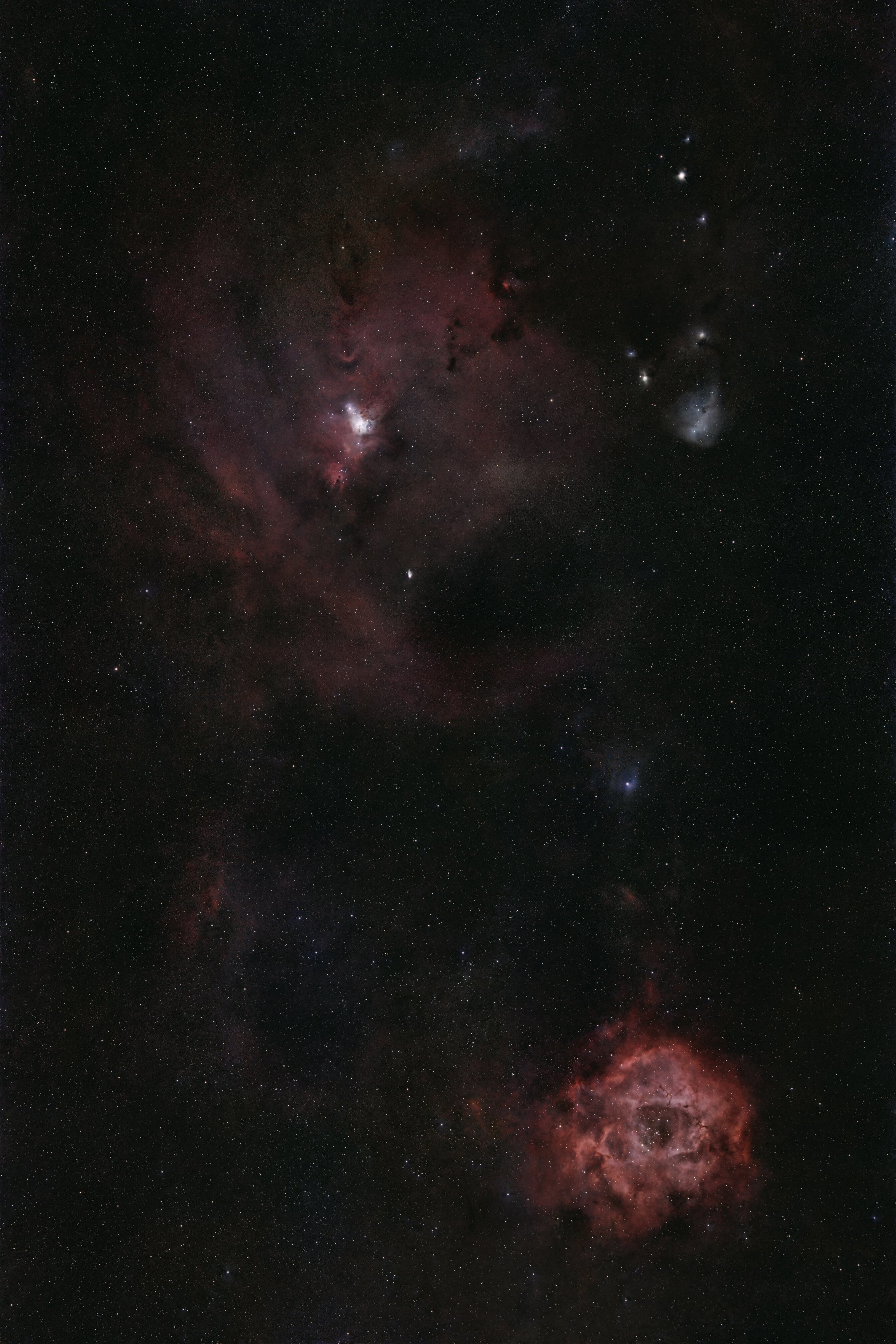 Bonjour, Tout d'abord je souhaite a tous et a toutes une belle et heureuse année 2025, qu'elle soit remplie de bonheur 😃 je vous présente ici ma version de IC434 et NGC2024. 🌌 La nébuleuse de la tête de cheval 𝗜𝗖𝟰𝟯𝟰 🌌La nebuleuse de la flamme 𝗡𝗚𝗖𝟮𝟬𝟮𝟰 📷 sony A7S defiltré 200-600mm Star adventurer 2i 📝 207x30s de pose + DOF 1h47de pose Empilement et Traitement avec pixinsinght GraXpert blurXteminator noiseXterminator et Photoshop j'ai pu posé beaucoup plus longtemps mais malheureusement de mon jardin la constellation d'orion passe derrière un arbre ... j'ai donc du jeter les 10 dernier brutes ...