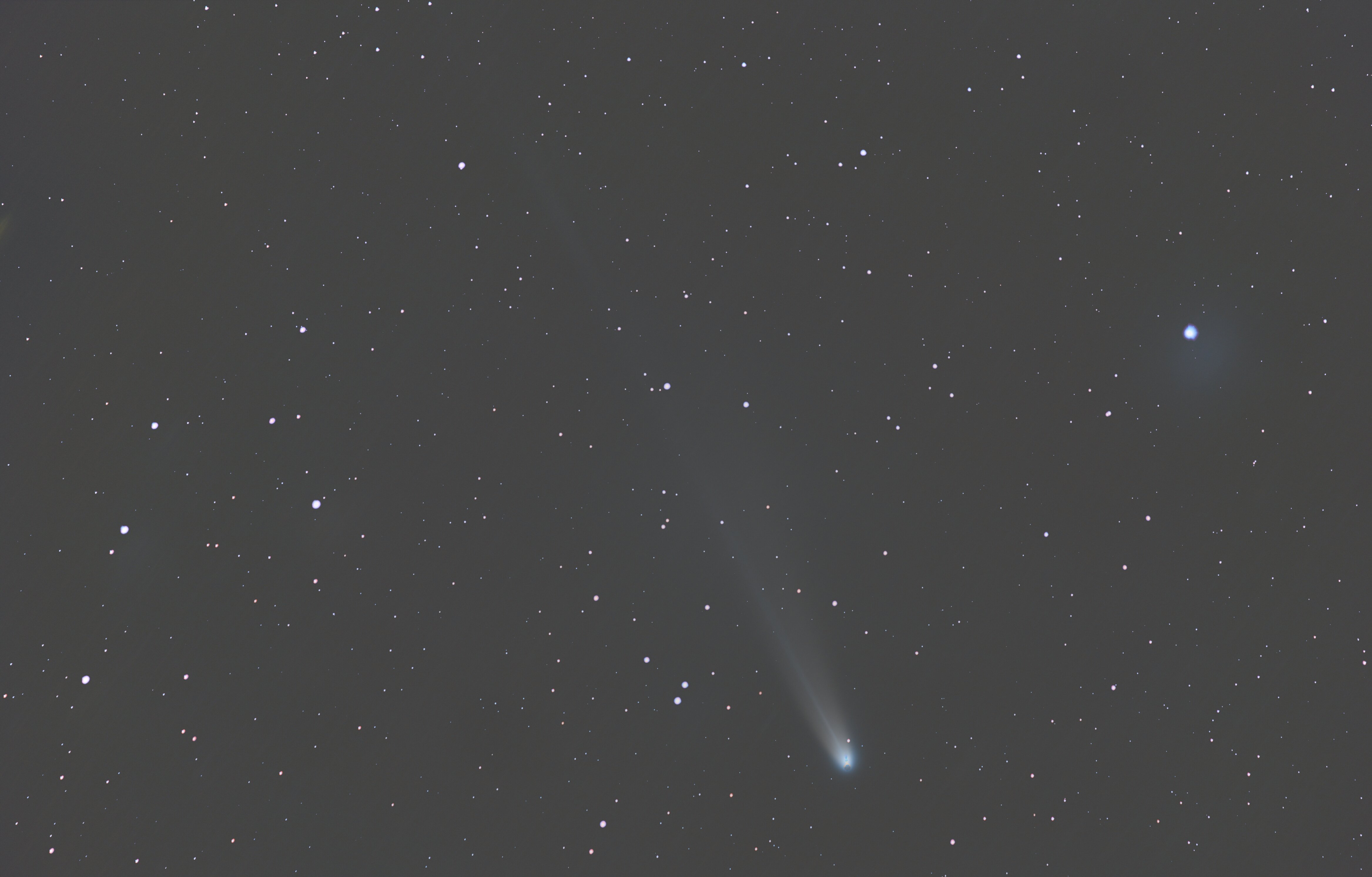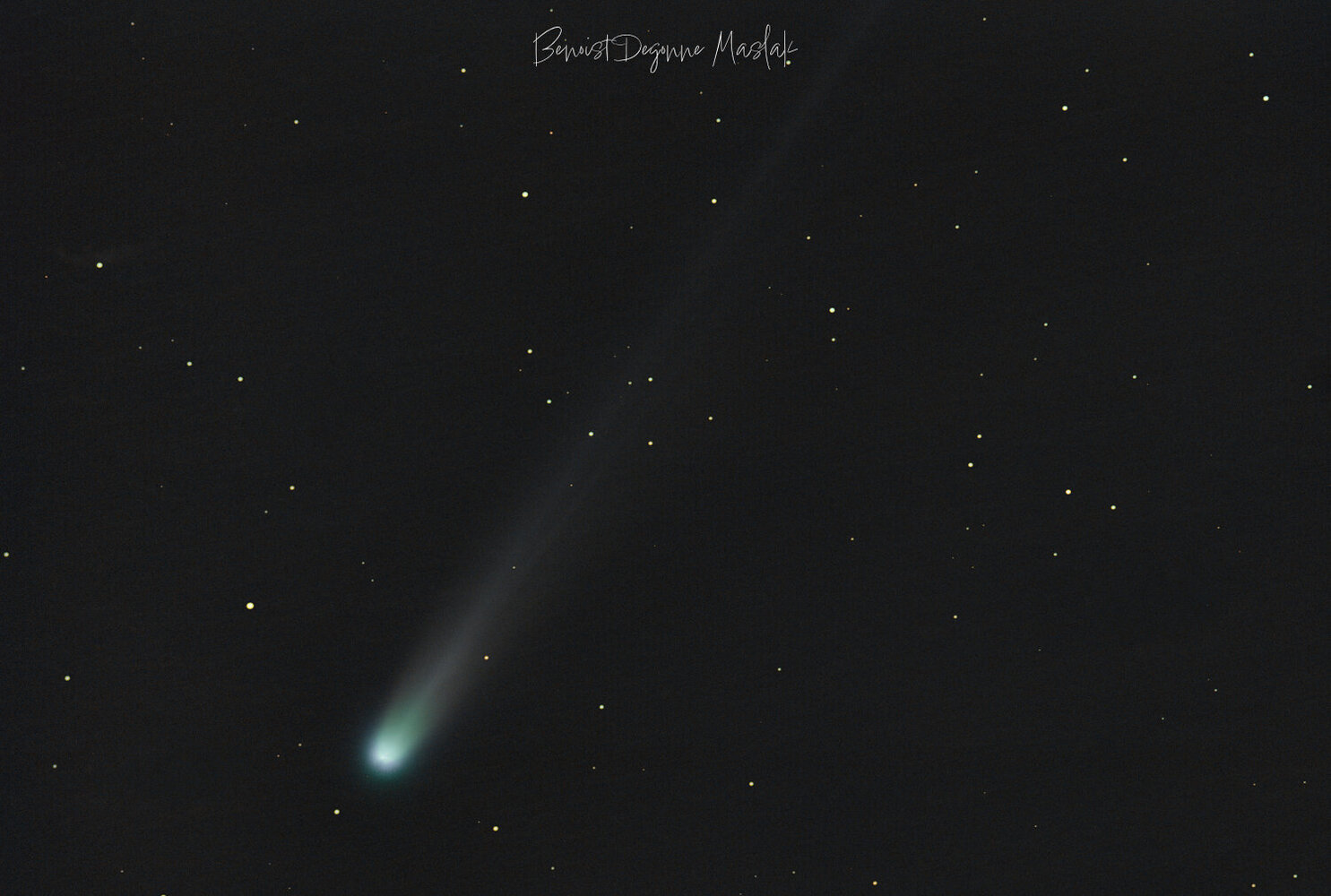 Bonjour à tous, je vous partage cette photo de la comète réalisé le 13 octobre à de 6h à 7h. lunette SW 62ED Canon 7D défiltré staradventurer 2i 50photos de 60s, j'ai bien galéré pour le traitement. j'ai utilisé le tuto auriez vous des conseils. j'ai mis pas loin de 8h de calcul 😉 et je ne suis pas sur d'avoir compris grand chose ? j'ai vu qu'il y avait dans siril un script R-comet mais je ne trouve pas d'info dessus ? Merci à tous pour vos retours et votre aide futur. Benoist