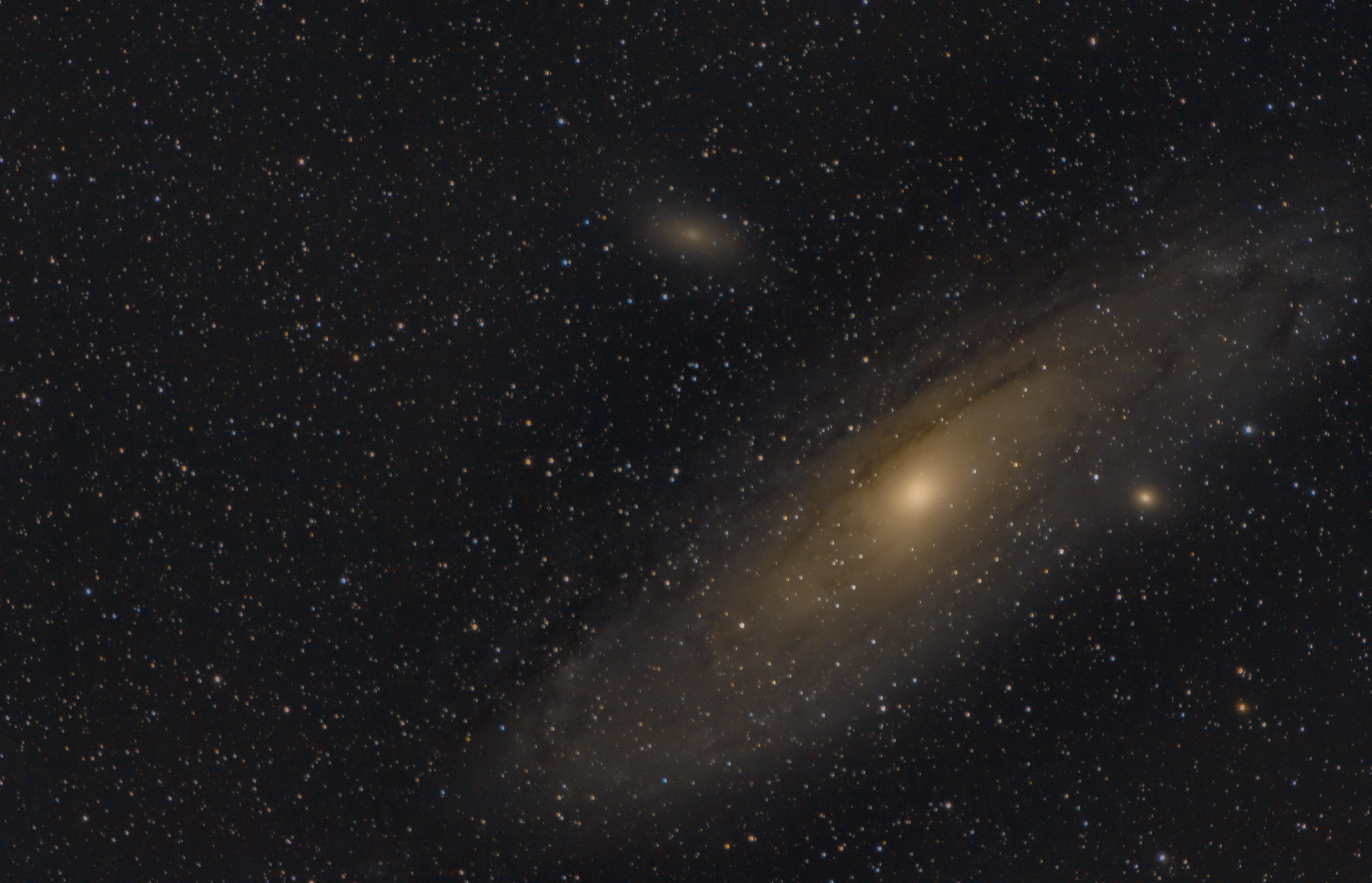 Bonjour tout le monde, Ce samedi soir j'ai réalisé ma première vrai sortie pour faire de l'astrophotographie du ciel profond et j'ai choisie un des objet les plus célèbre : la galaxie d'Andromède ! N'hésitez pas à faire des retours 😁 Matériels : Canon 7D mark II + Sigma 150-600mm Contemporary Monture Star adventurer GTI Go To wifi 85 bruts de 40s / 500 iso / 500mm de focale Empilé avec Siril et traitement final sous lightroom Il va falloir que je m'entraine d'avantage, image encore très bruitée (faut-il encore plus d'image bruts ?) -