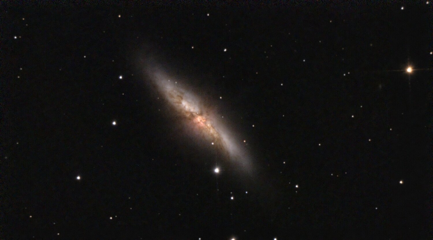 Superbe le duo M81/M82. J'adore le chromatisme des galaxies et les jets visibles sur M82. ET merci pour l'information dur le cutoff à 150. Je ne sais pas où je suis allé cherché cette valeur de 252 (peut etre la valeur proposée par le logiciel ZWO de la caméra qui propose cette valeur pour le gain moyen ,0 pour gain faible et 450 pour le gain élevé sans autre choix sur ce logiciel). Comme j'utilise plutôt APT, où on peut choisir le gain je vais passer à 150 pour les prochaines photos. Je regarderai si à 30sec de pose ca fait évoluer dans le bon sens le rapport S/B :-) -