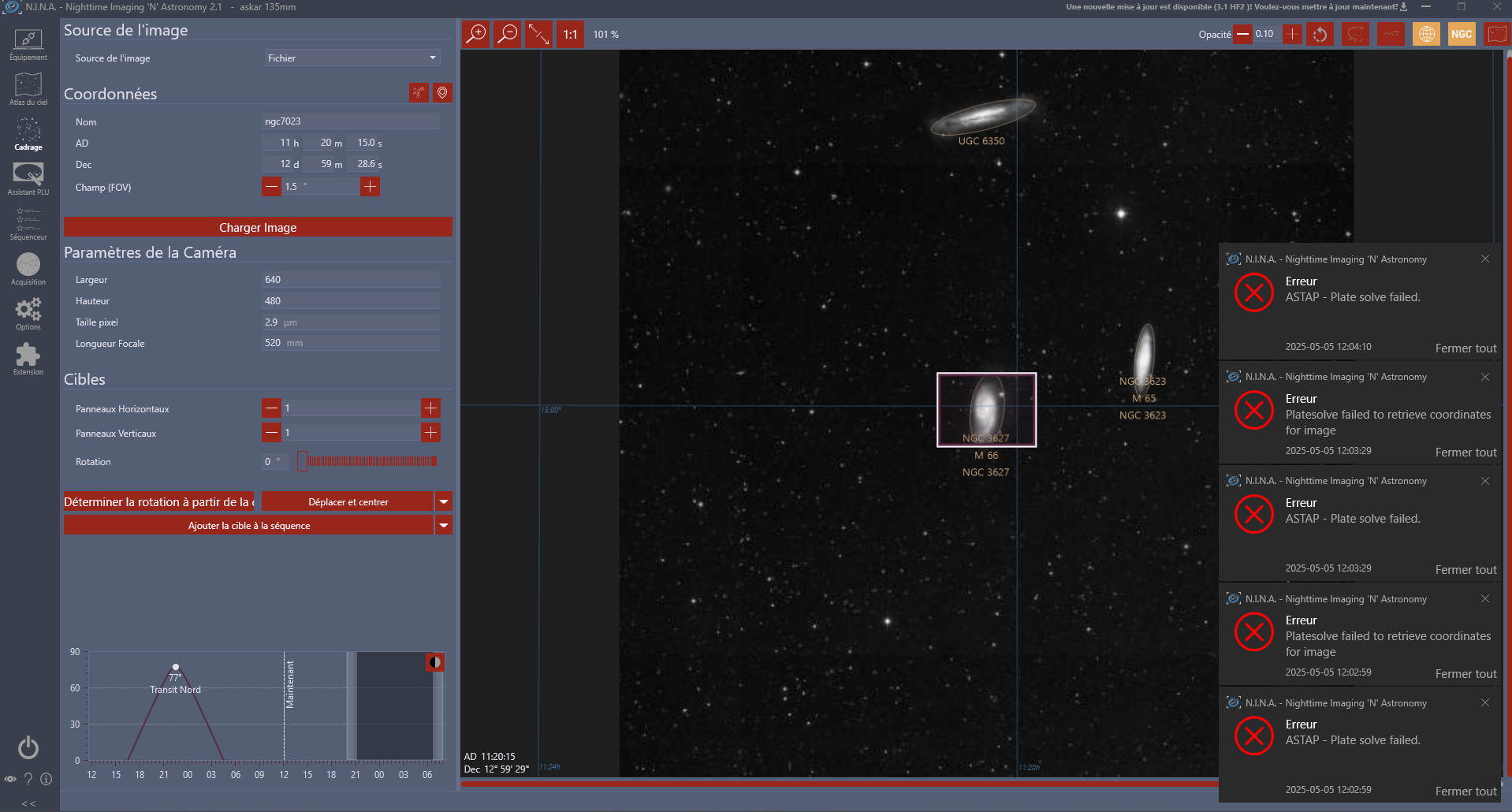 voila le genre de message que je reçois regulierement la c'est un essai en mode simulateur si je tape NGC 7023 dans la barre de recherche en ayant bien indiqué fichier, j'ai ce message -
