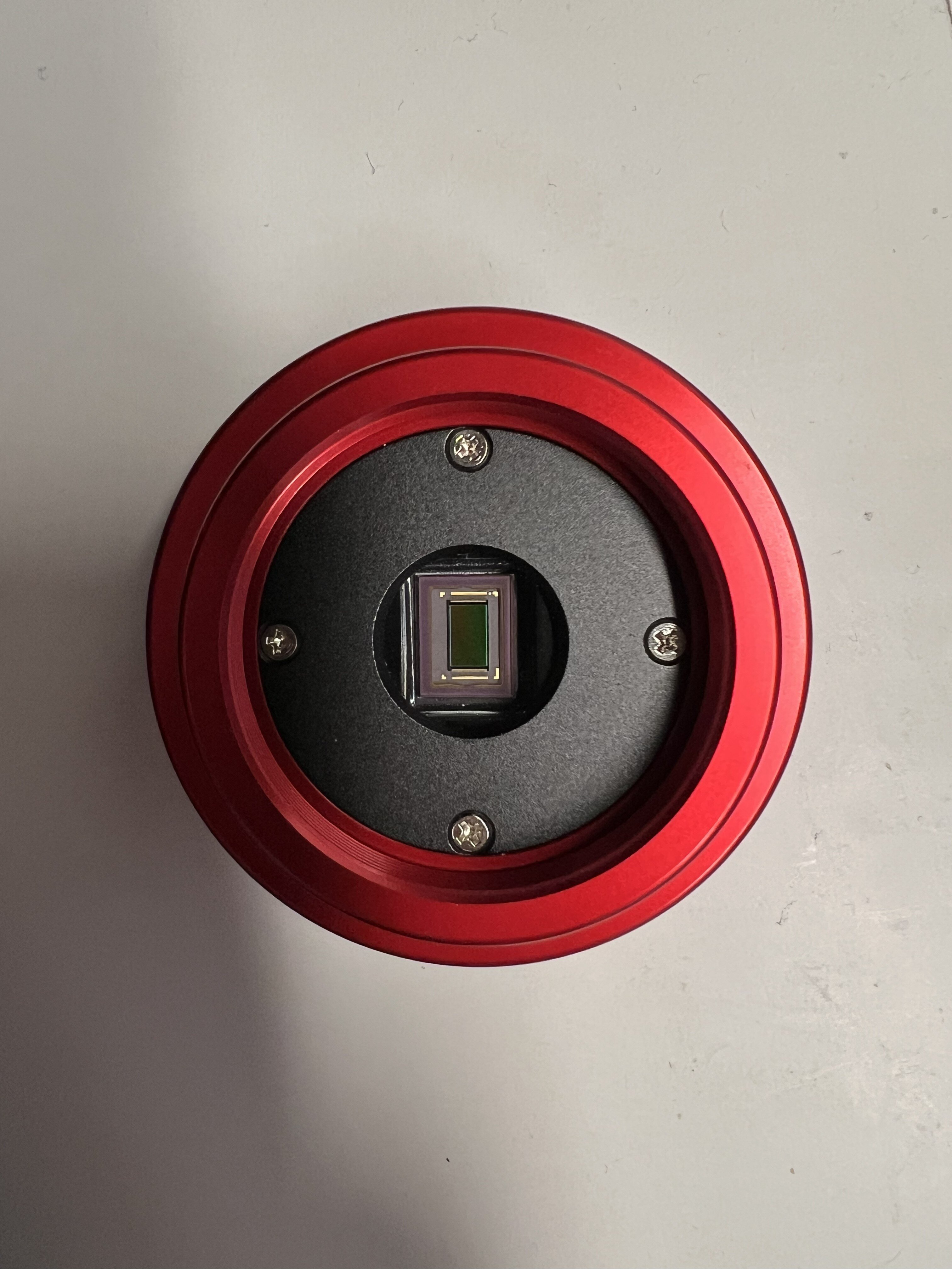 J'ai essayé le calfeutrage et le pare-buée. Rien n'y fait, le rayon est toujours là. Je tourne de 90° le caméra, l'image tourne, mais le rayon bleu reste dans la diagonale qui part d'en haut à droite. Test ultime (?) : j'ai retiré la caméra du télescope, j'ai retiré tout accessoire, je l'ai posée sur la table pointant vers le plafond dans la pénombre de l'appartement.... et je vois toujours le rayon bleu ! Le seul moment où je ne vois pas le rayon bleu, c'est quand je mets le bouchon sur la caméra. Serait-ce un reflet au niveau du verre qui protège le capteur de la caméra ? Il y a bien 4 petites vis, mais ce n'est pas sensé être enlevé j'imagine. C'est plutôt pour le SAV, non ? -