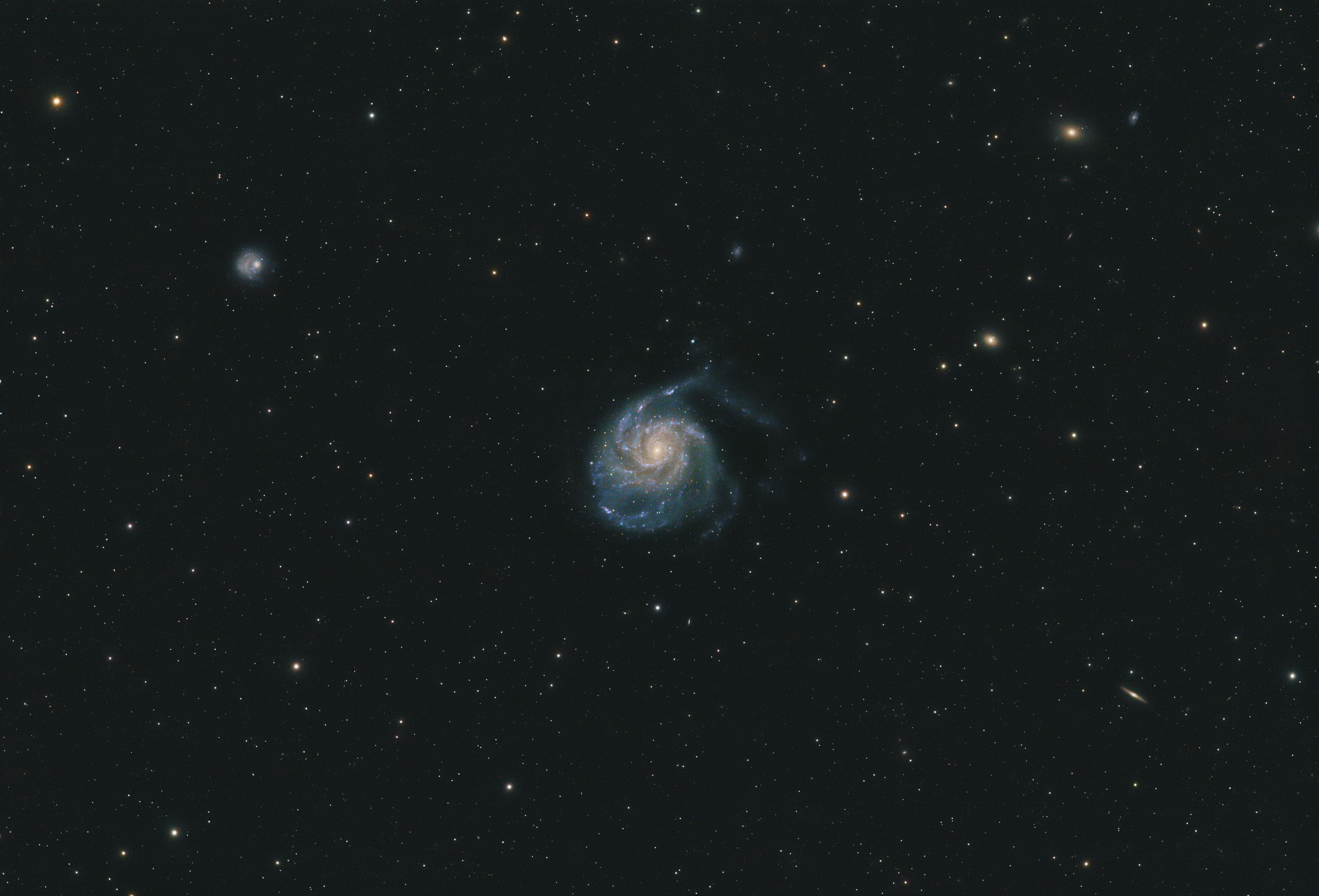 25. Voilà M101 avec un traitement différent cette fois-ci (merci @tranquiliste pour tes conseils sur la délinéarisation, j'ai utilisé STF et HistogramTransformation au lien de Statistical Stretch et j'ai passé un coup de NoiseX après la délinéarisation et non pas avant comme j'avais l'habitude de le faire). Je retrouve enfin la couleur bleutée que je cherchais désespérément à avoir sur ma première image. Prochaine cible M13 demain soir!