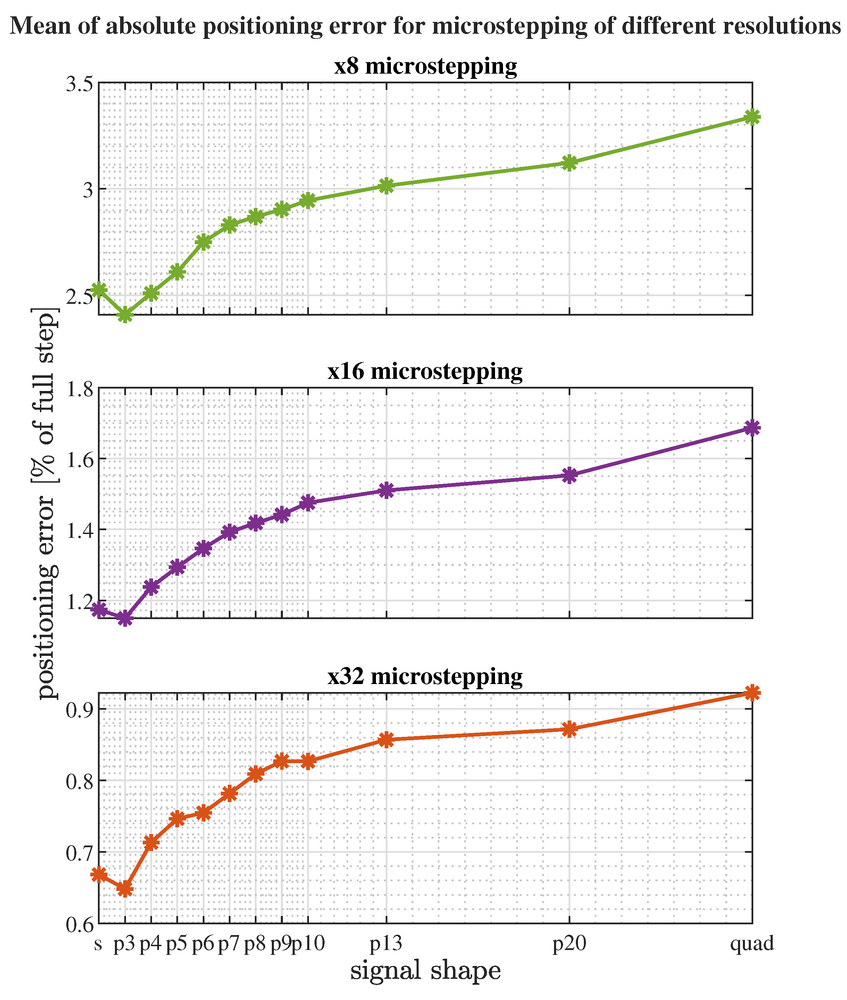 Effectivement, c'est vrai. Pour être plus précis, en interne, le driver TMC génère un signal sinusoïdal très fin sur les bobines du moteur, découpé en 256 microsteps par pas complet TOUS LE TEMPS. Et quand on paramètre le driver TMC en 1/16 pas, le firmware de ta carte mère enverra 16 microstep pour réaliser un tour. mais le driver TMC2209 lui génèrera pour chaque microstep envoyé depuis la carte mère, 16 micro pas "fictifs" afin qu'au final, on ai 16*16=256 micropas. Pour ce qui est de la précision, oui tourner en 256 de pas sera plus précis mais pas autant qu'on pourrai le penser je pense (mais je n'ai rien pour étayer mes propos ...) 100% d'accord ! le problème c'est que je n'ai absolument pas de quoi tester tout ça ^^. et au vu des résultats de la nuits dernière, avant de contrôler la précision de mes réducteurs harmoniques, je vais refaire de 0 mon viseur polaire qui est catastrophique en terme de précision ^^. Pour répondre au problèmes mécaniques du réducteur harmonique, on est d'accord, "best parts is no parts" mais je pense qu'il est pertinent en apportant réellement un x5 sur la précision (et le couple) et vu les contraintes très faibles qu'il prend, il as une belle vie devant lui (faible couple et vitesse inexistante !) J'ai trouvé cette étude qui parle de "l'influence du microstepping ..." https://www.mdpi.com/1996-1073/14/19/6107? Tu pourra voir ce graph qui est assez intéressant. Et oui, je posterai mes résultats avec grand plaisir ! a+ -