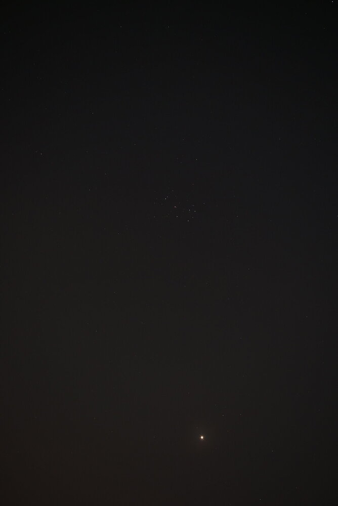 Bonjour, Entre cirrus et lever de Pleine Lune. Sony A7s +Samyang 135mm ouvert à 2,8, prise unique de 1s à 800 ISO