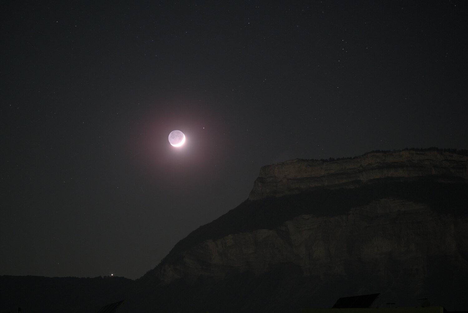 Bonjour, Pour la veille de mon anniversaire, sur la fin puisque habitant au pied des montagnes: 80ED, correcteur/réducteur 0.85, Sony A7s, 1/200s à 100 ISO:
