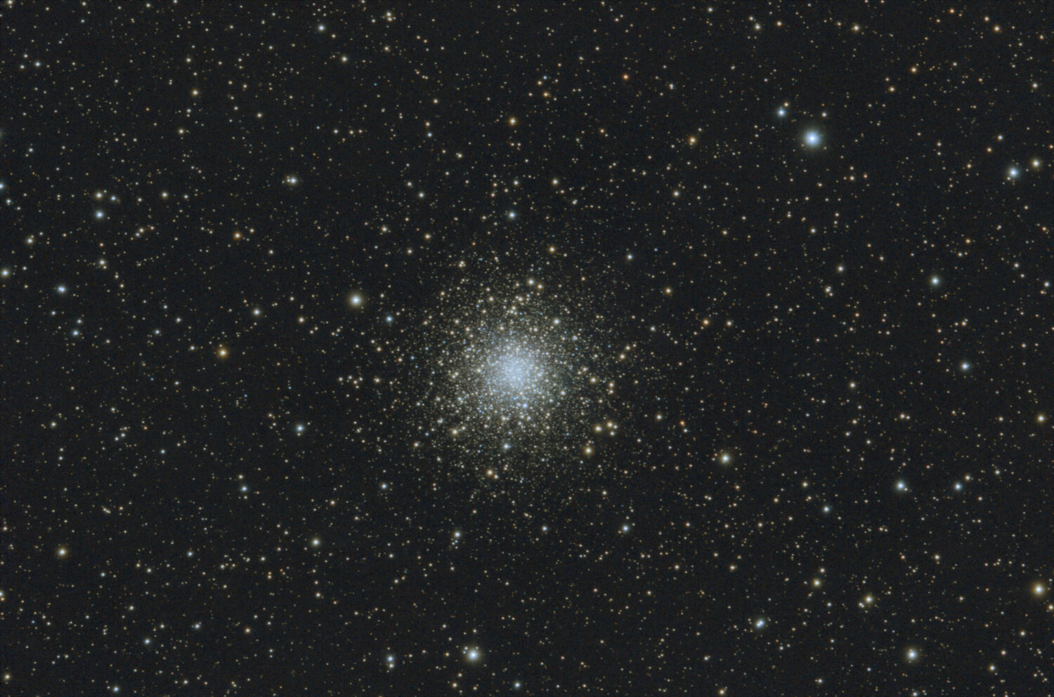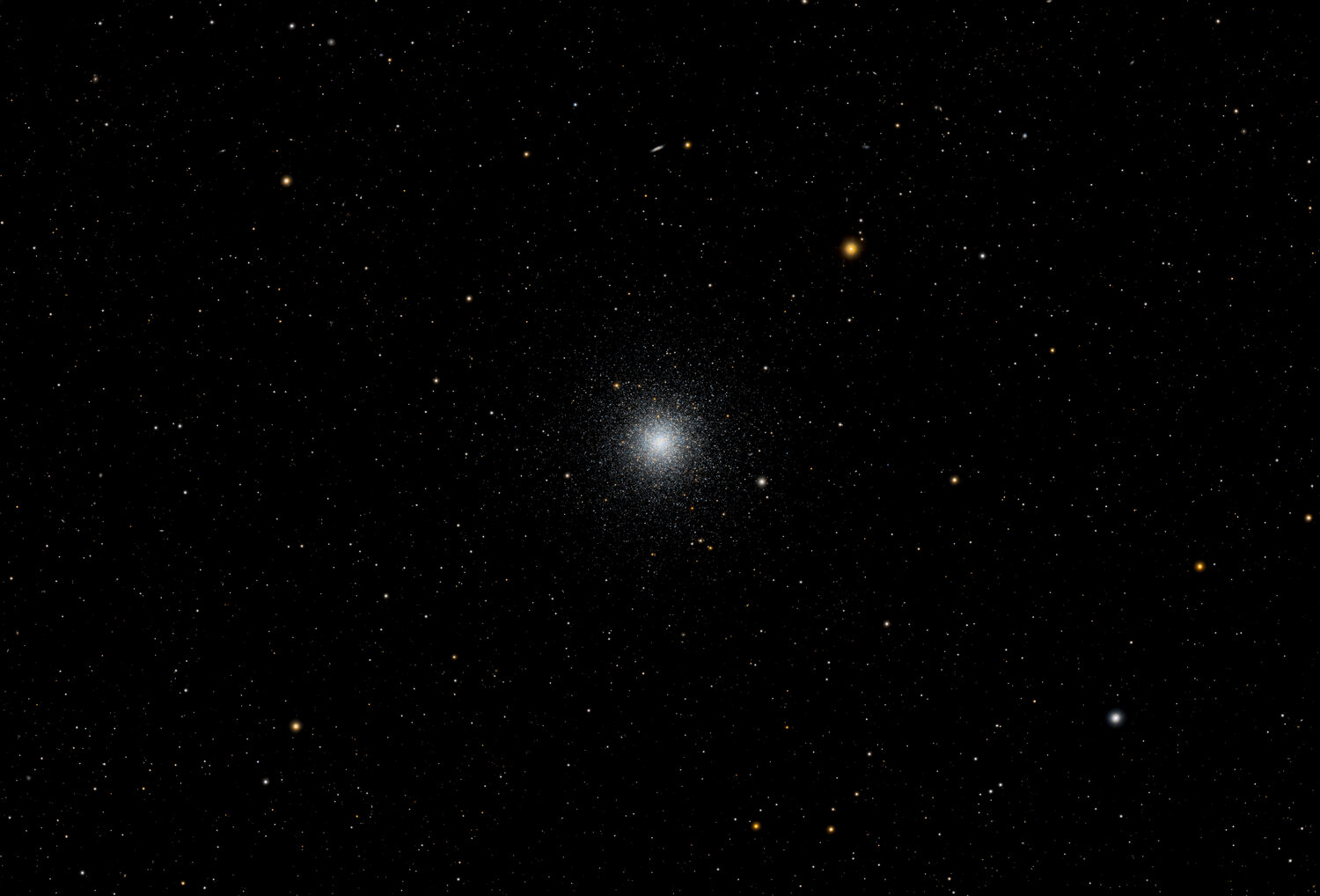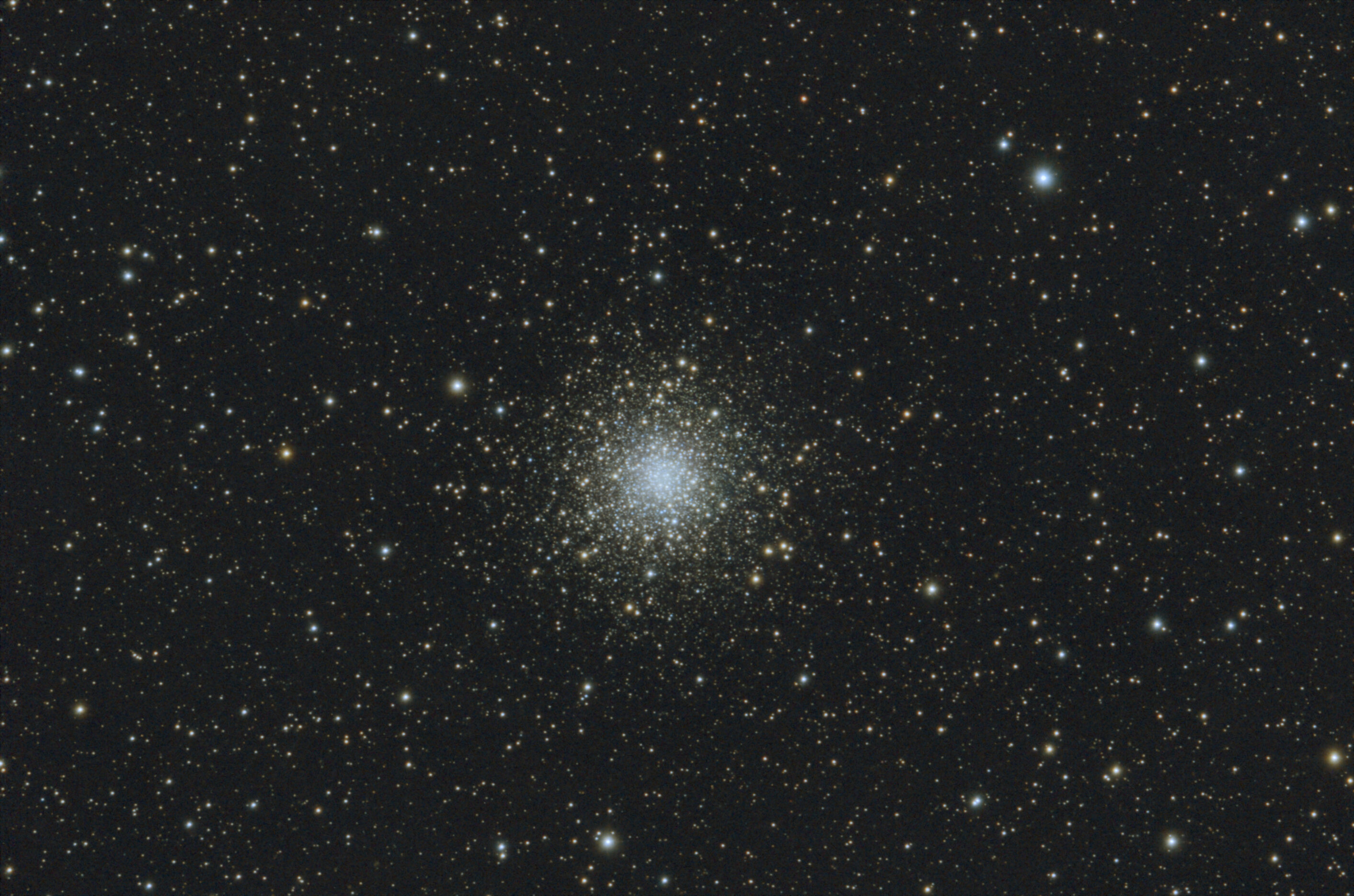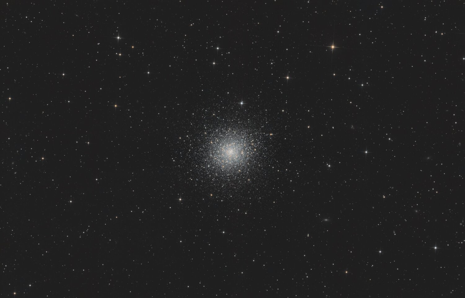 Salut tout le monde ! Je sais, je sais... Sergio @T350 va me glisser que la définition d'un amas globulaire n'est pas idéale avec une 55/265...mais bon, le voici quand même ! Sans chichis, 2h de pose en L et 30' par couche RGB en attendant le levé de LDN 902. Traitement rapide pix (Align/SPCC/BlurX/Stretch NoiseX/LRGBCombine) après prétraitement Siril/Sirilic StarPikes sous PS et export. Pas de quoi s'étendre mais je ne l'avais jamais fait ! (clic-droit pour zoom)
