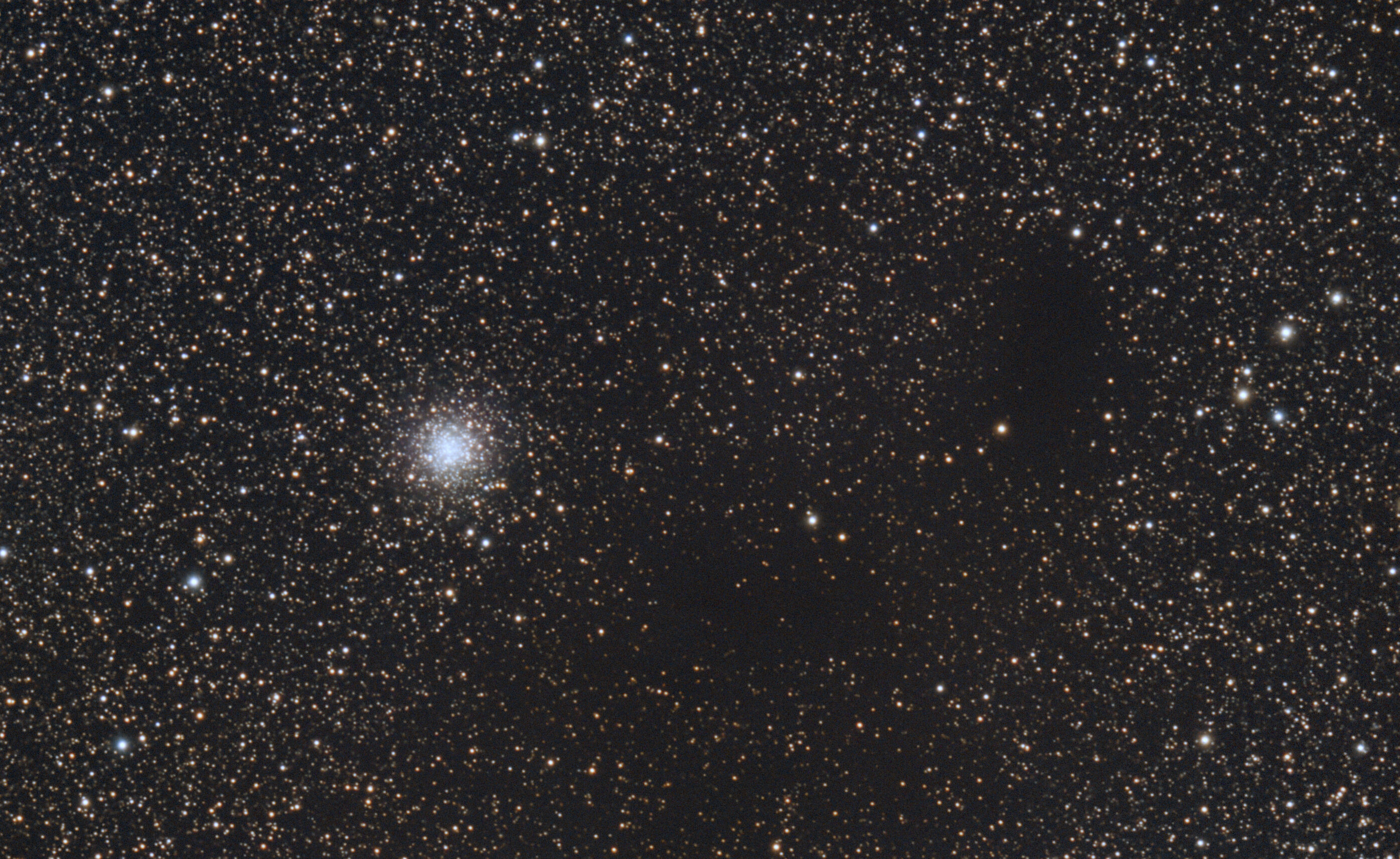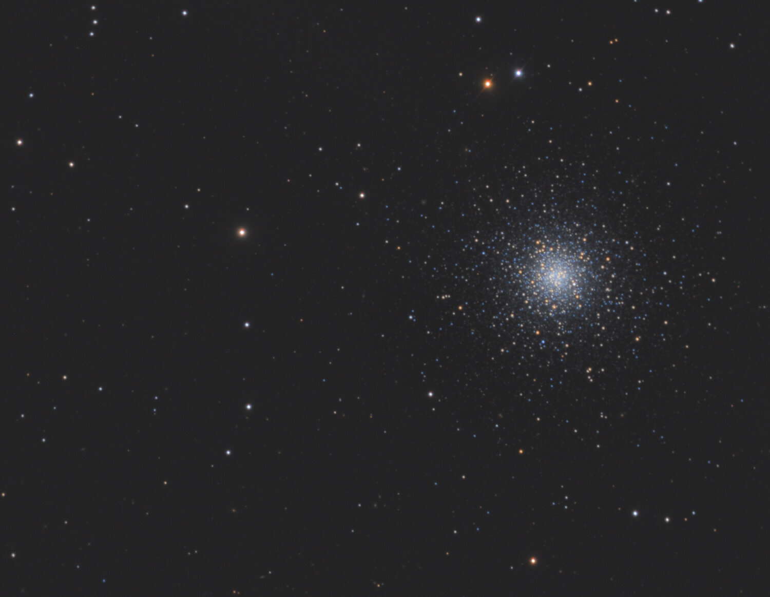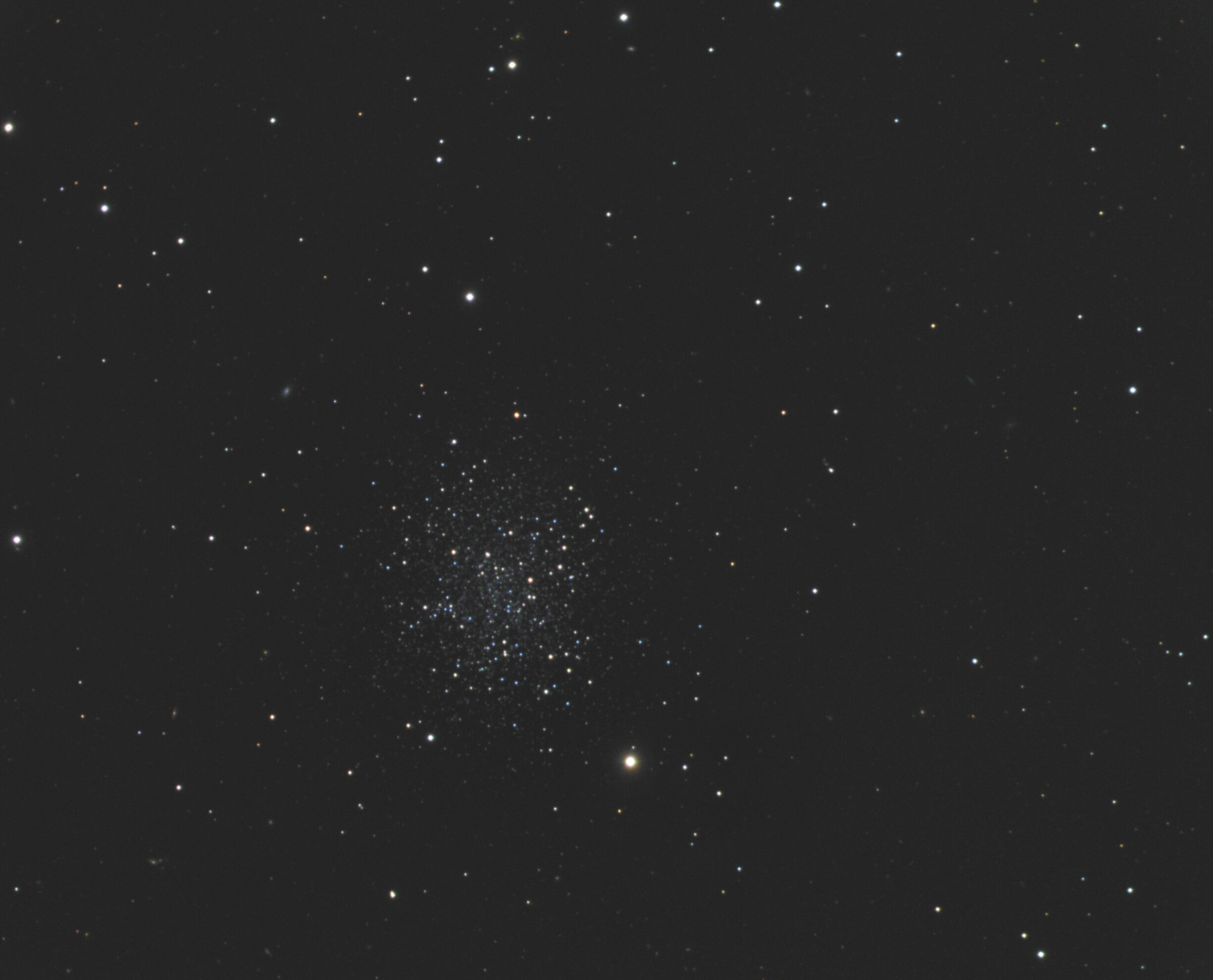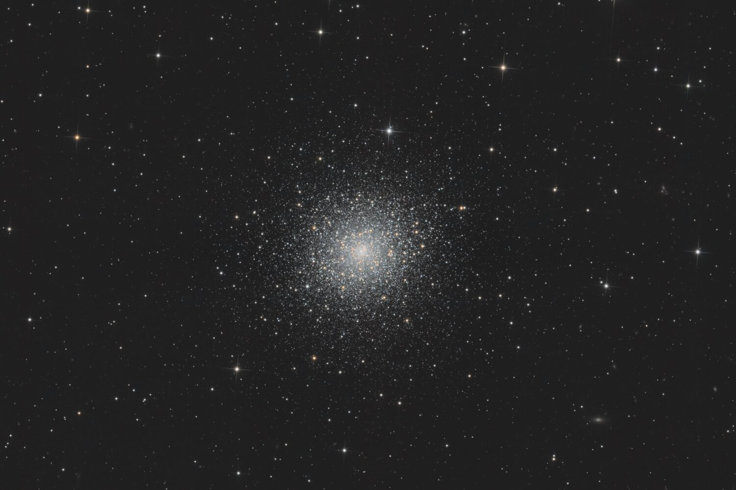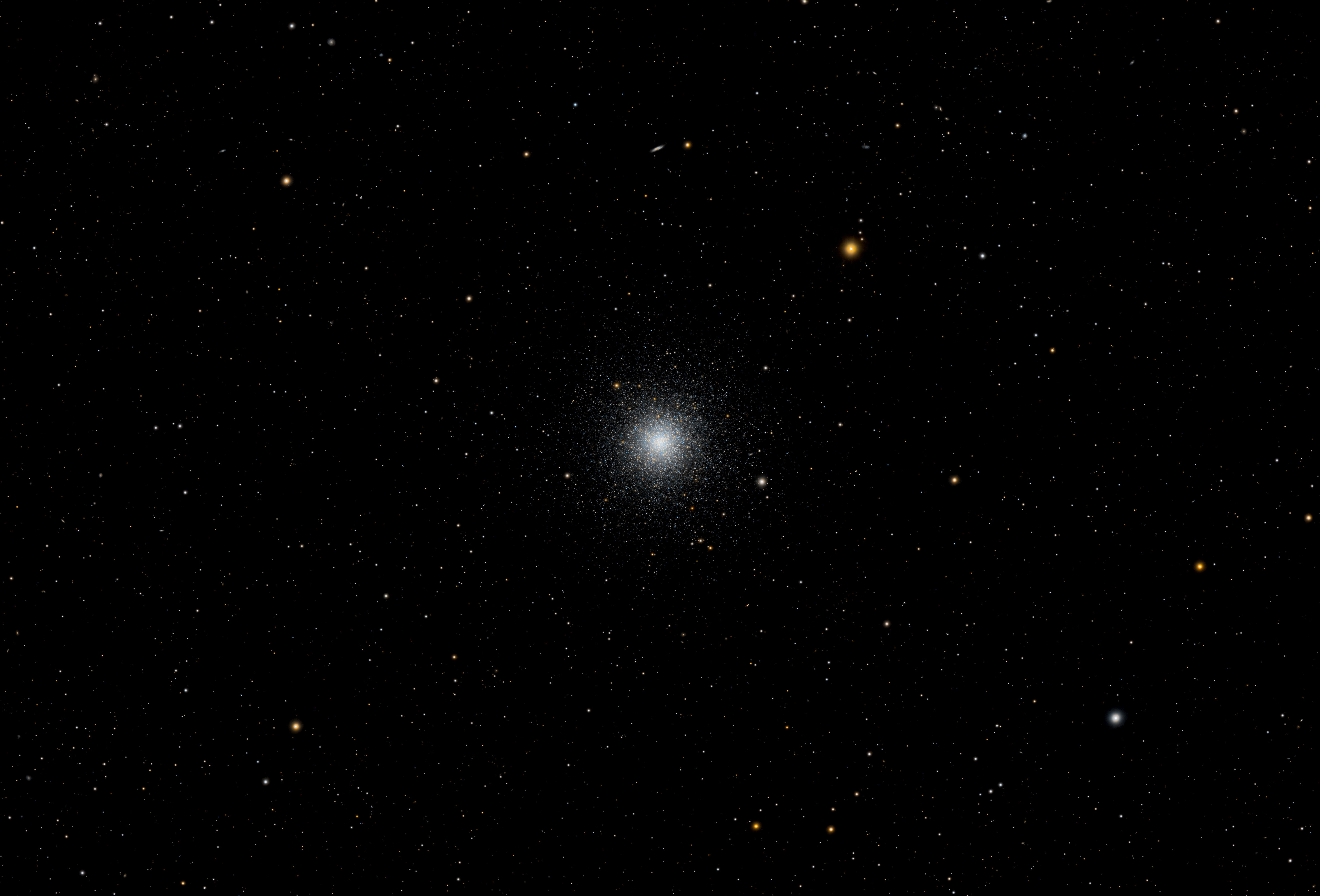 Salut tout le monde ! Je sais, je sais... Sergio @T350 va me glisser que la définition d'un amas globulaire n'est pas idéale avec une 55/265...mais bon, le voici quand même ! Sans chichis, 2h de pose en L et 30' par couche RGB en attendant le levé de LDN 902. Traitement rapide pix (Align/SPCC/BlurX/Stretch NoiseX/LRGBCombine) après prétraitement Siril/Sirilic StarPikes sous PS et export. Pas de quoi s'étendre mais je ne l'avais jamais fait ! (clic-droit pour zoom)