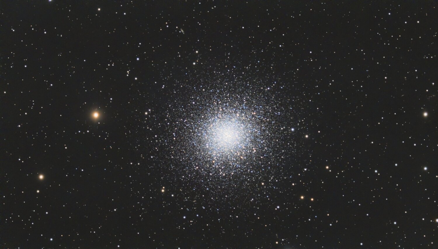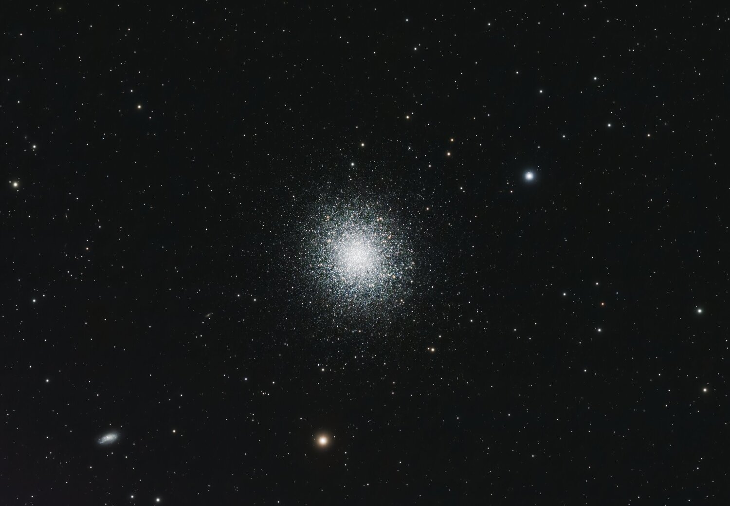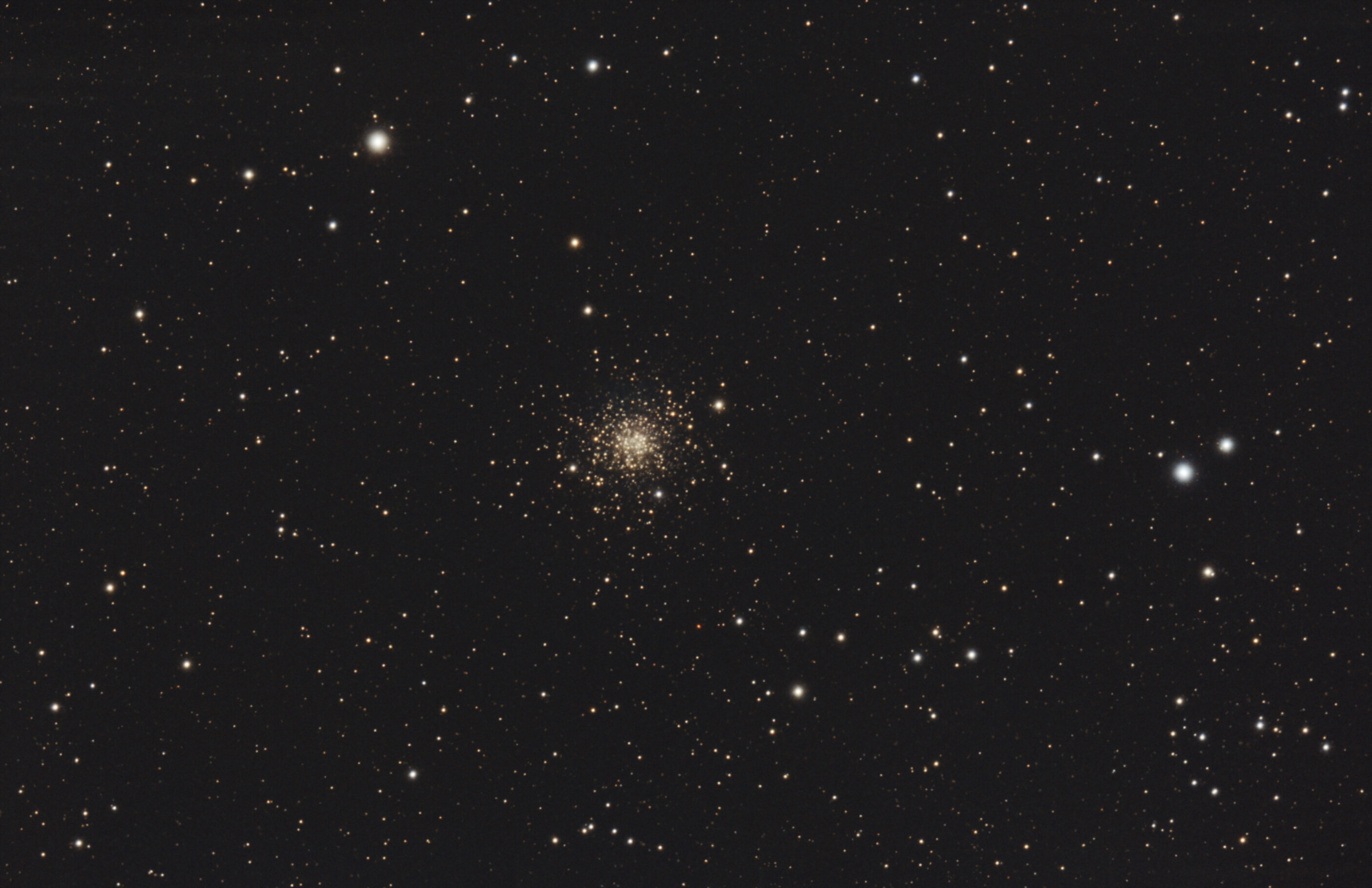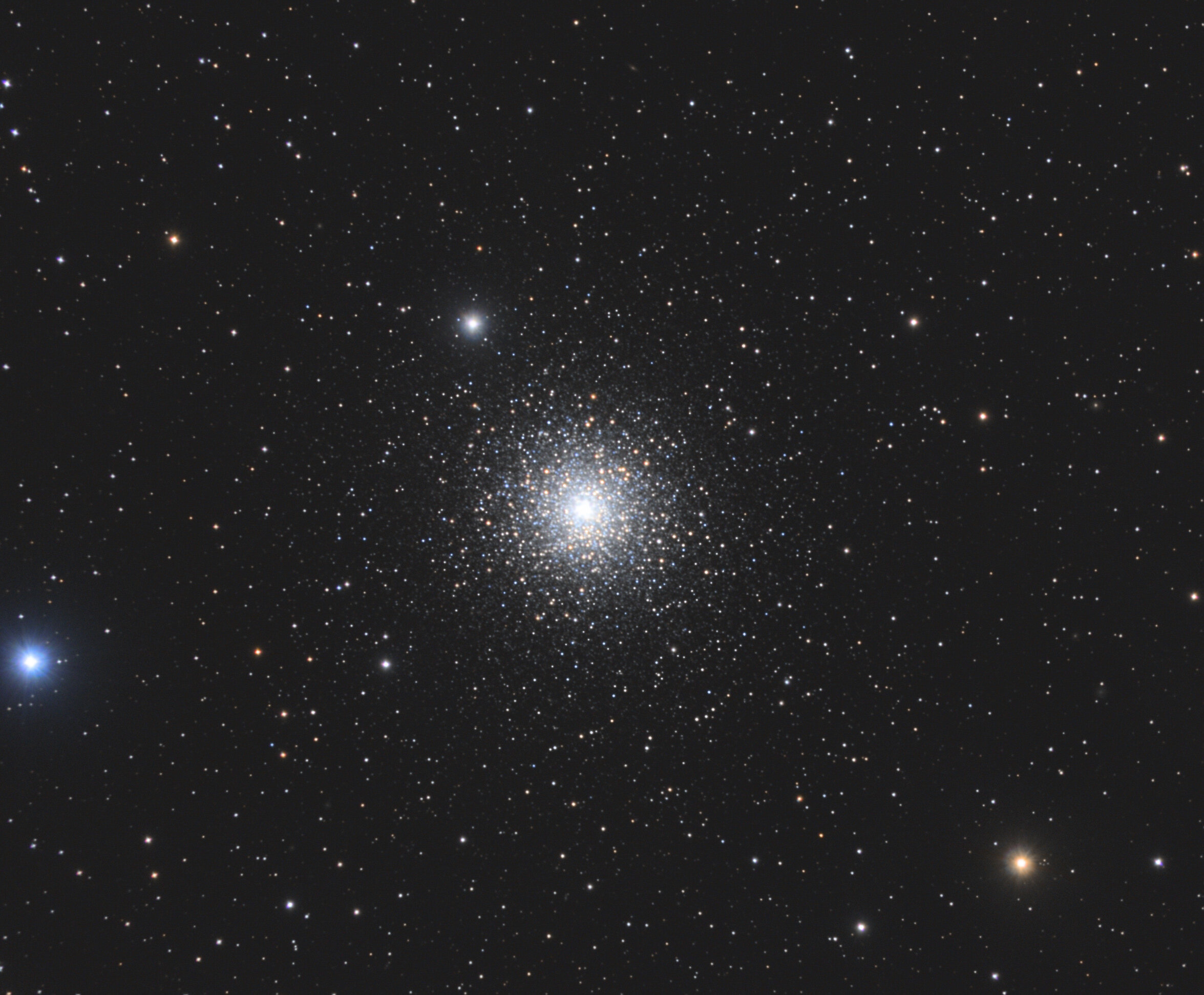 Salut tout le monde ! Je sais, je sais... Sergio @T350 va me glisser que la définition d'un amas globulaire n'est pas idéale avec une 55/265...mais bon, le voici quand même ! Sans chichis, 2h de pose en L et 30' par couche RGB en attendant le levé de LDN 902. Traitement rapide pix (Align/SPCC/BlurX/Stretch NoiseX/LRGBCombine) après prétraitement Siril/Sirilic StarPikes sous PS et export. Pas de quoi s'étendre mais je ne l'avais jamais fait ! (clic-droit pour zoom)