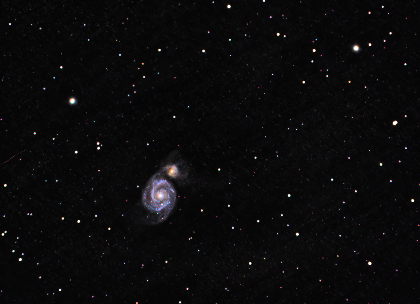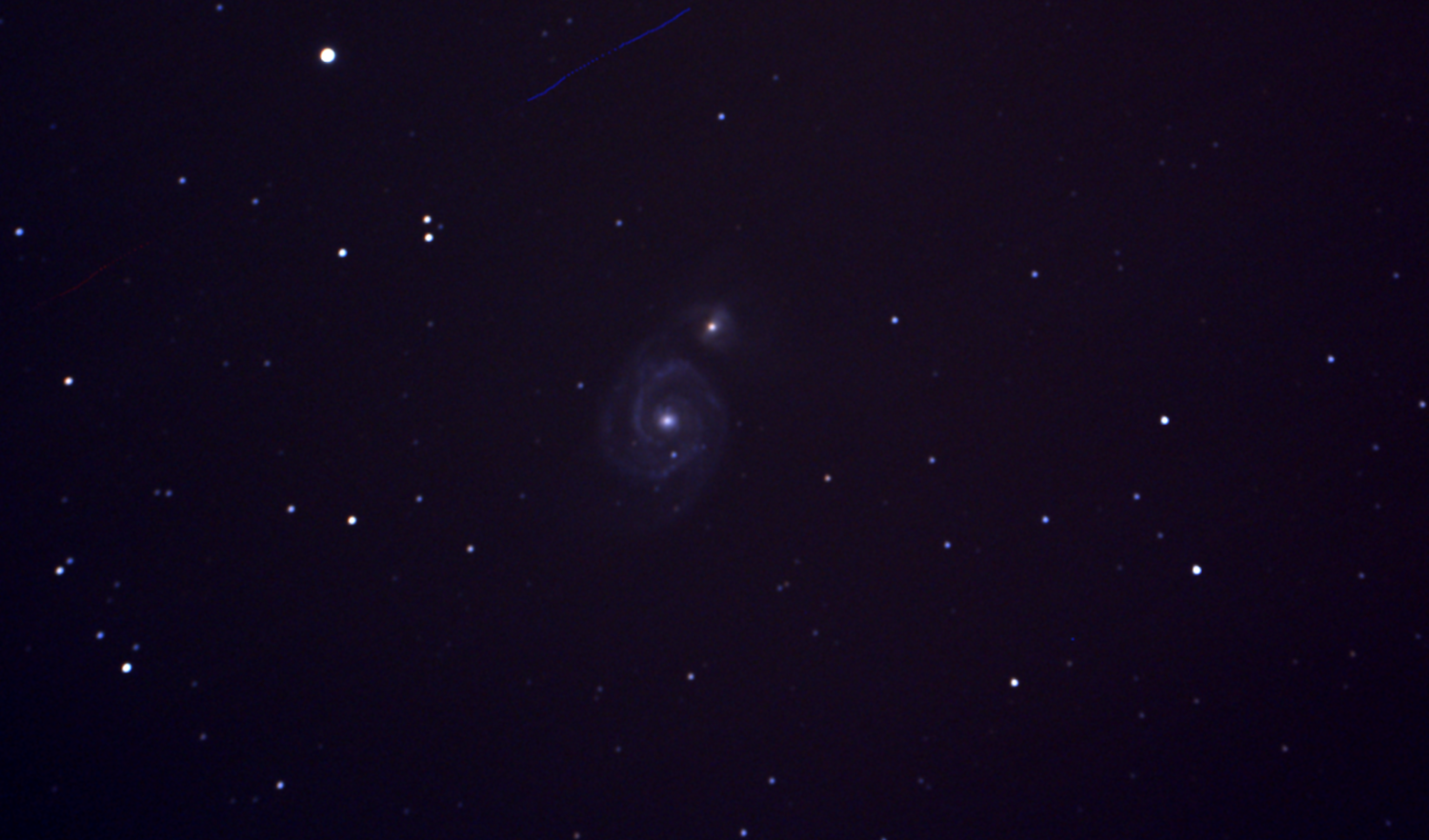 Bonjour à tous, N'ayant aucune connaissance, il y a quelque temps, j'ai posé une question ici dans la rubrique matériel pour du VA. Malheureusement je n'ai eu aucune réponse... Je me suis donc lancé avec l'assistance de quelques amis astrophotographes. Je suis un observateur, j'utilise -malheureusement pas assez souvent- un dob 500 qui reste à la campagne. Je voulais pouvoir observer en ville ce que je vois à la campagne avec mon 500. Je n'en demande pas plus ! Observer pour moi cela veut dire, ne pas attendre 20mn pour voir une image potable d'un objet, ne pas traiter l'image le lendemain afin d'être satisfait du rendu... Il y a eu un questionnement sur astrosurf sur comment il faut nommer cette pratique, j'ai bien aimé la proposition de Bruno : "l observation sur écran". Je trouve qu'il y a un problème avec "avec visuel assisté" car cela regroupe des pratiques fort différentes. Je ne comprends pas comment appeler cette pratique à mi chemin entre visuel sur écran et astrophotographie. Je parle des possesseurs de seestar, vespera et autres instruments automatisés qui posent des dizaines de minutes, voire plusieurs heures puis traitent leur image, comme les astrophotographes. Enfin bref, comme il s'agissait de ne pas me ruiner pour une pratique pour laquelle je n'étais pas certain qu'elle me plairait, j'ai donc tout acheté d'occasion. Une monture vixen GPDX avec goto skywatcher (350 euros) ; une 200/800 skywatcher (350 euros) ; un réducteur nexus starizona qui ramène la focale à 600 mm et corrige très bien (400 euros). La caméra est un prêt, une ZWO 294 mc pro (utilisé sans refroidissement). J'avais donc pour un peu plus de 1000 euros (sans la caméra) une config que je comptais utiliser avec sharpcap. 1ers résultats. Ni connaissant rien, j'ai choisi de faire des poses de 10 secondes avec un total de 5mn par objet. Comme je l'ai dit, je veux que les objets apparaissent rapidement ! Pour ça, je n'est pas été déçu, l'objet apparaît à l'écran dès les 1eres 10 sec ! Au bout d'une minute, le bruit est atténué et je ne vois pas ce que les autres minutes apportent à l'image finale (mais l'écran de mon Dell est mauvais). Je suis bluffé !!! J'ai encore des progrès à faire avec sharpcap et comprendre d'où vient le vignettage (distance capteur/correcteur ?). Voici les 1ers résultats : Images enregistrées au format en PNG puis converties en jpg pour la publication. Centre-ville de La Rochelle, télescope 200/800, réducteur 0.75x et 5mn de pose totale max pour des galaxies au zénith. M63, M97-108 ; M51 ; NGC 4656 NGC 4244 les 29 et 30 mai 2025 : Une chose est certaine je ne peux pas autant détailler ces galaxies avec mon 500 à la campagne ! Jean-Jacques