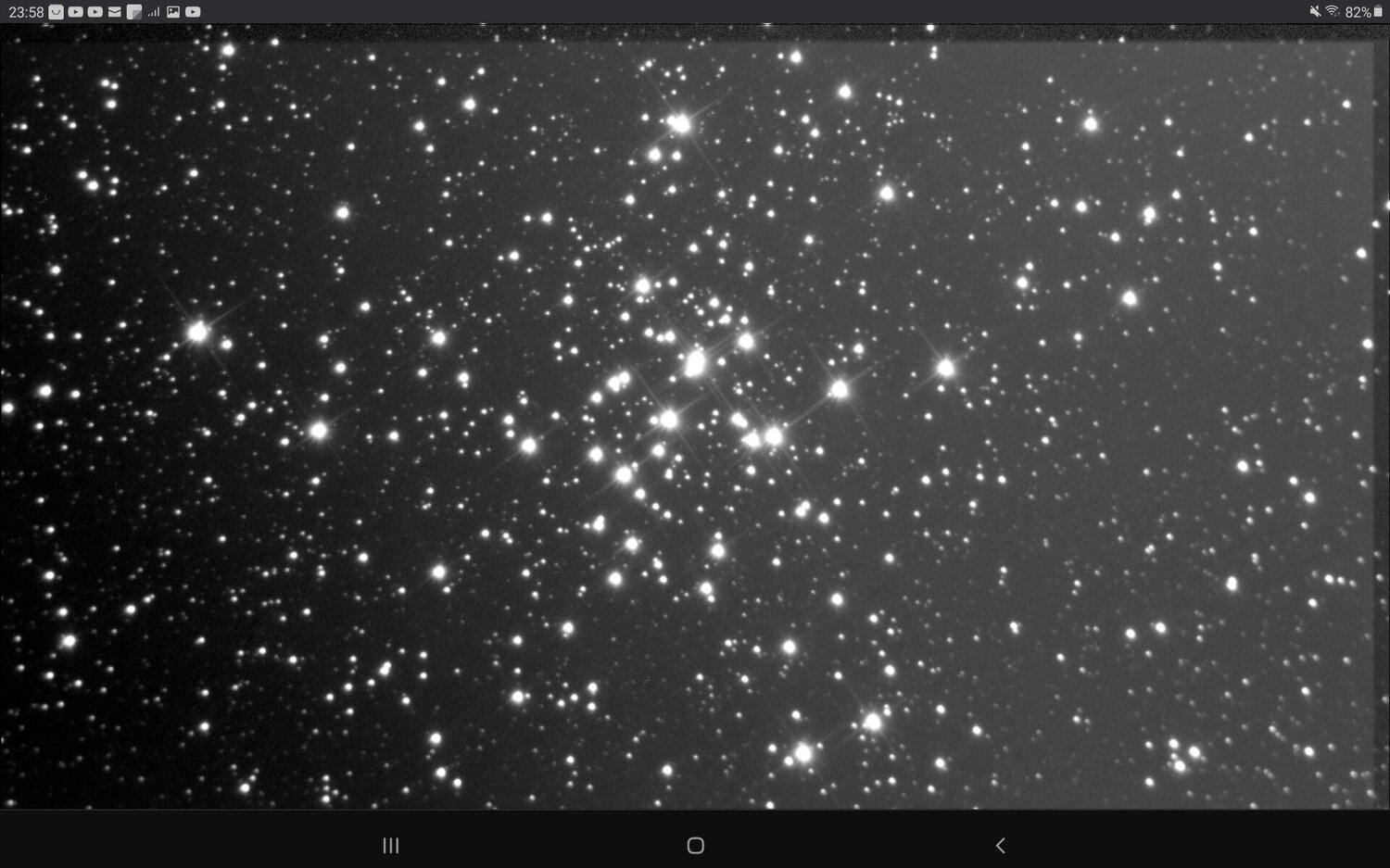 Bonsoir à tous, J'ai profité d'un beau ciel dégagé mais avec beaucoup de vent pour m'essayer une deuxième fois sur du visuel assisté. Sur les conseils de mon ami @oukima cible était donc deux amas stellaire ouvert assez facile NGC 884 et NGC 869. Je précise au cas ou pour ceux qui ne savent pas que j'utilise pour l'instant une monture équatoriale EQ3-2 motorisé avec un tube SW de 150/750mm. Ma caméra est un capteur Sony IMX 385 et j'utilise un réducteur de focale Kepler x0,5. J'ajoute aussi que les 3 images postées ci dessous sont du brute de décoffrage en temps de pose unitaire de 4secondes sans empilement aucun…. Pour mes début je ne recherche pas l'esthétique mais plutôt vivre le moment en live…. La dernière photo une capture d'écran. Je suis bien évidement ouvert à tout commentaire afin de progresser car y a du BOULOT !!!!!! Mick.