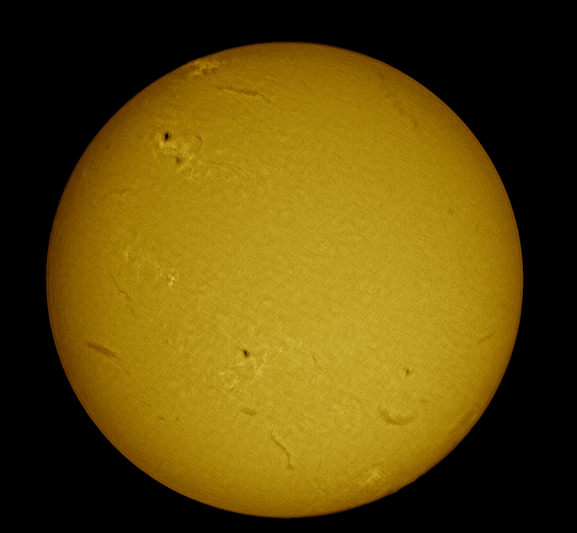 Bonjour, Difficile de résister avec ce Soleil. Une acquisition vite fait vers midi, vidéo de 30s, traitement AS! et Pixinsight (solartoolbox) et un peu Photoshop
