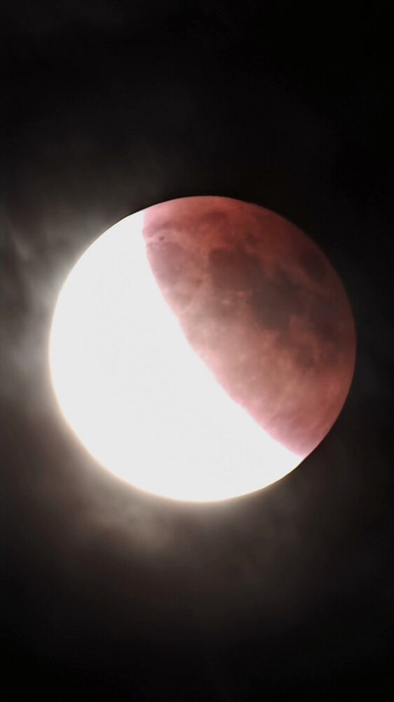 Bonjour Conditions difficiles pour imager l’éclipse a cause des nuages et du vent Stack de vidéo de 10 s mode raw Soft seestar uniquement 1 image totalité 2 ime image 1 mn après la fin de la totalité Lieu France Isère Bièvre Backyard Exposition manuelle avec gain et temps d’exposition augmentés Mode planétaire lune recherche manuelle Instrument de prise de vue : SEESTAR S50 V 2.6.1 / 5.50 mode AZ